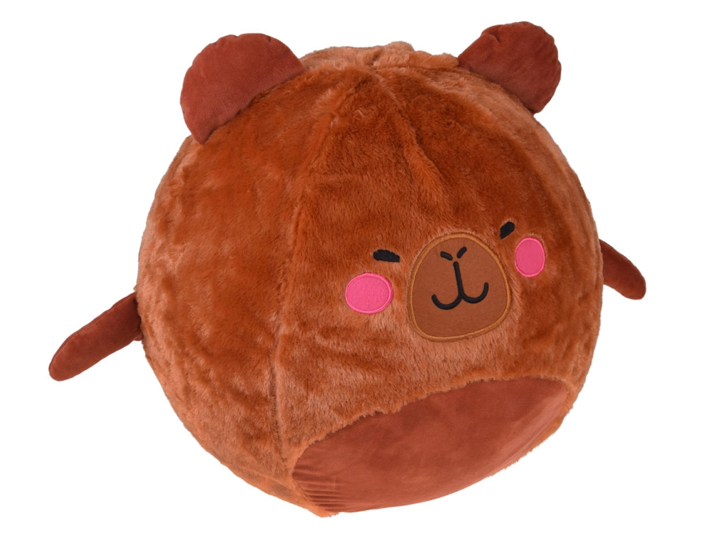 Sød plysbold formet som en capybara med en diameter på ca. 45 cm, der kombinerer bevægelsesglæde og sikker sjov. Indeni er der elastisk gummi for fremragende opspring, udenpå blød plys behagelig at røre ved – ideel til børn fra 3 år hjemme, i haven og i børnehaven.
