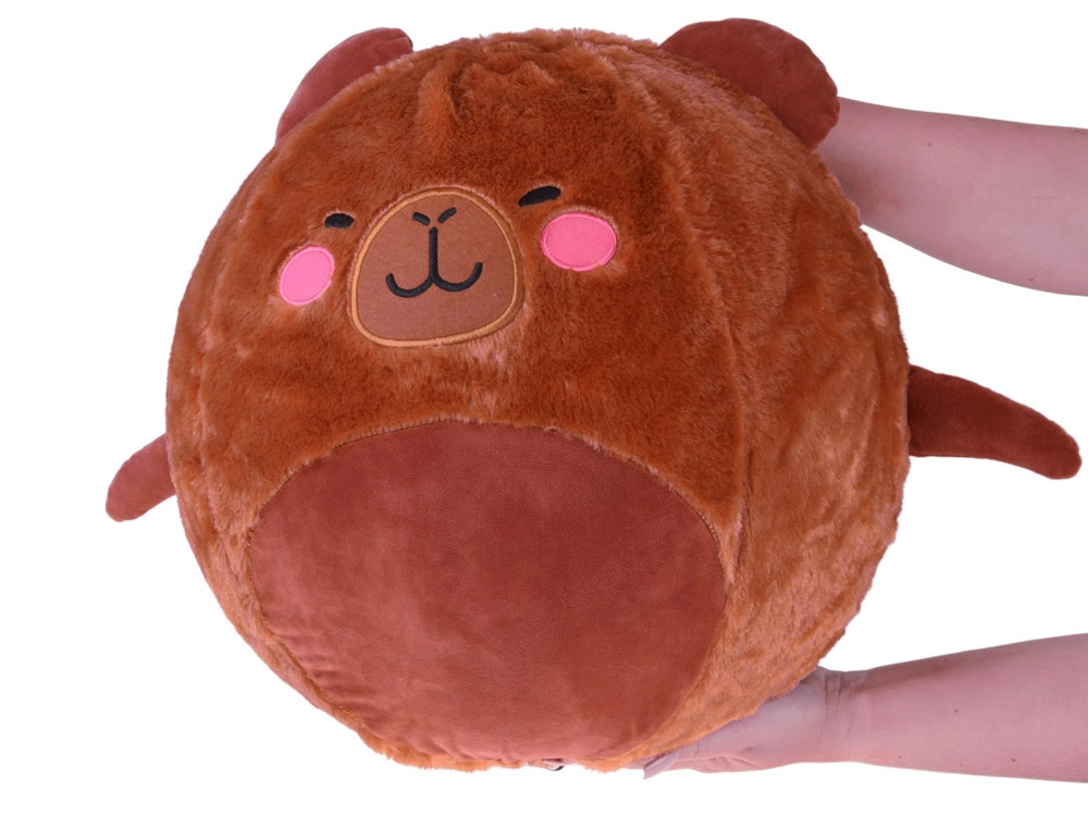 Opdag en unik plysbold i mønsteret af en brun capybara, som støtter aktiv leg og bringer masser af grin. Takket være den elastiske gummikernе hopper den rigtig godt, mens den bløde plys-overflade er skånsom og sikker selv for mindre børn.