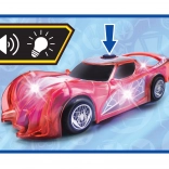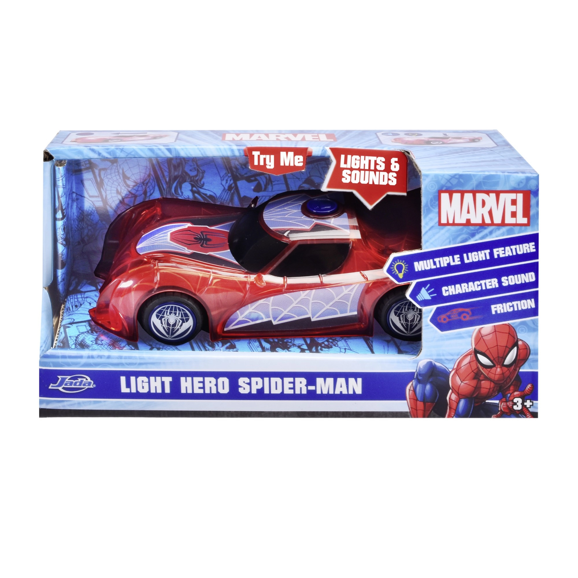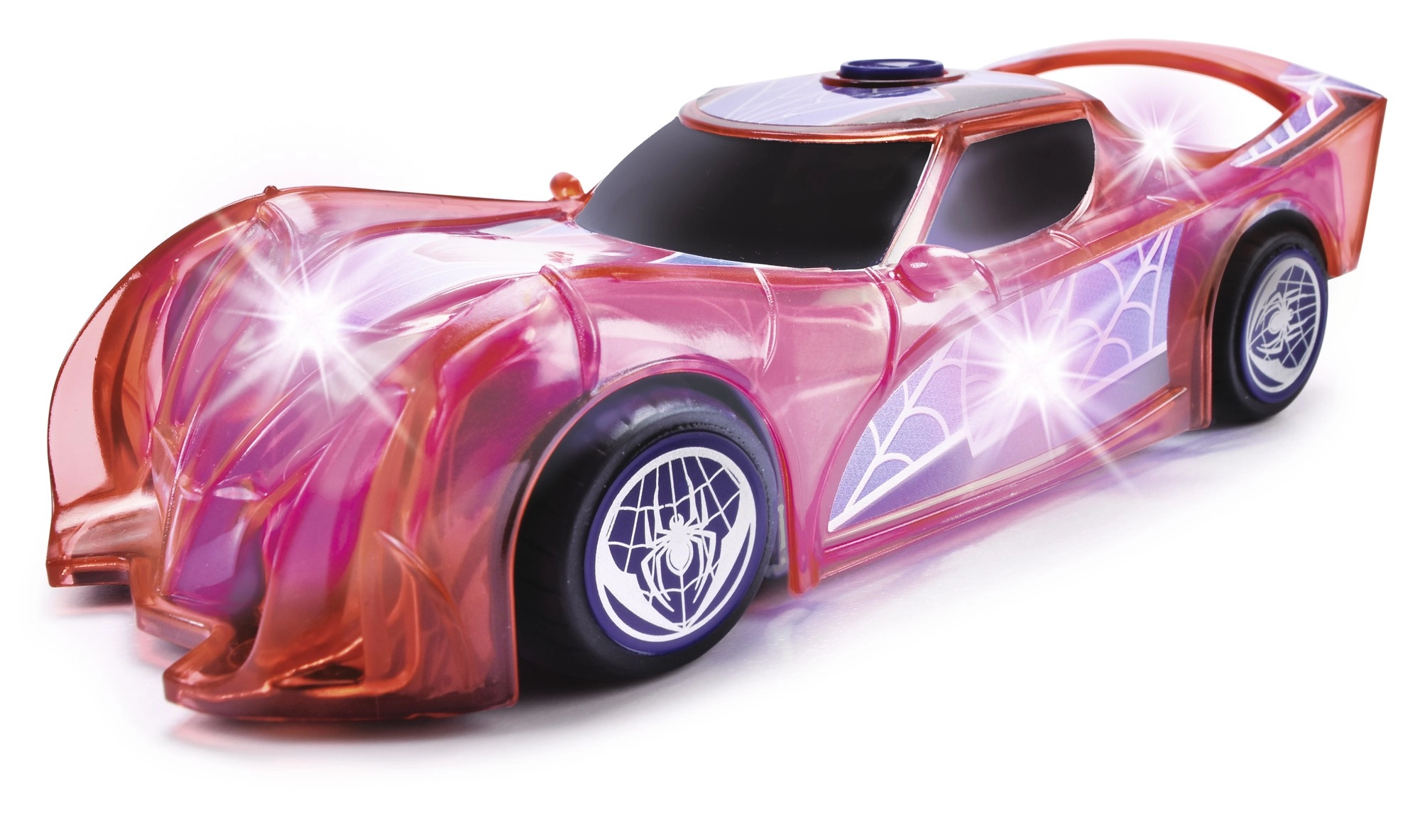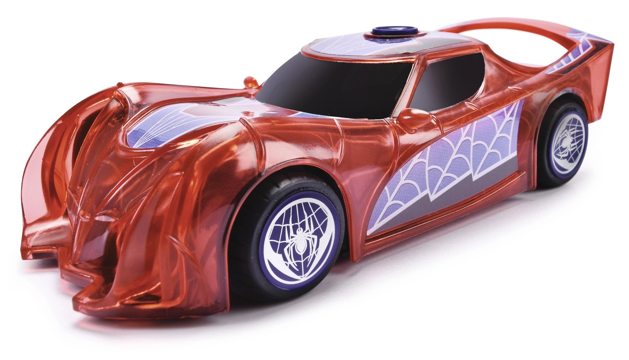 En stilfuld bil inspireret af helten SPIDER‑MAN fra MARVEL-universet, som glæder børn med lys- og lydeffekter og den lette friktionsdrev. Den gennemsigtige karrosseri med spindelnætsmotiv, aerodynamisk spoiler og robuste hjul sikrer actionfyldt kørsel og fantasi ved leg med superheltescener.