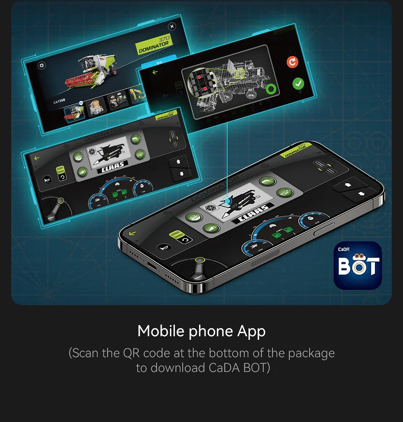 Dette store tekniske CaDA-byggesæt bringer gennemtænkte detaljer fra den virkelige mejetærsker CLAAS Dominator 370 – fra det roterende skærebord til tømningsrøret og det robuste undervognschassis med solide hjul. Takket være dual styring kan modellen nydes både med den medfølgende 2,4 GHz RC-fjernbetjening og via Bluetooth-appen med en rækkevidde på over 25 m.