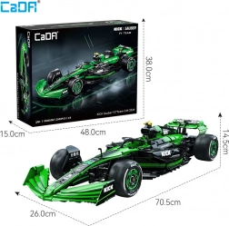 Byg den ikoniske enkeltstarts-racer F1 KICK SAUBER i skala 1:8 af 2553 klodser. Modellen fra CaDA Master byder på realistiske detaljer, funktionelt styring, roterende hjul og høj kvalitet tryk på klodser uden klistermærker. Du kan valgfrit samle nummer 24 (Zhou) eller 77 (Bottas).