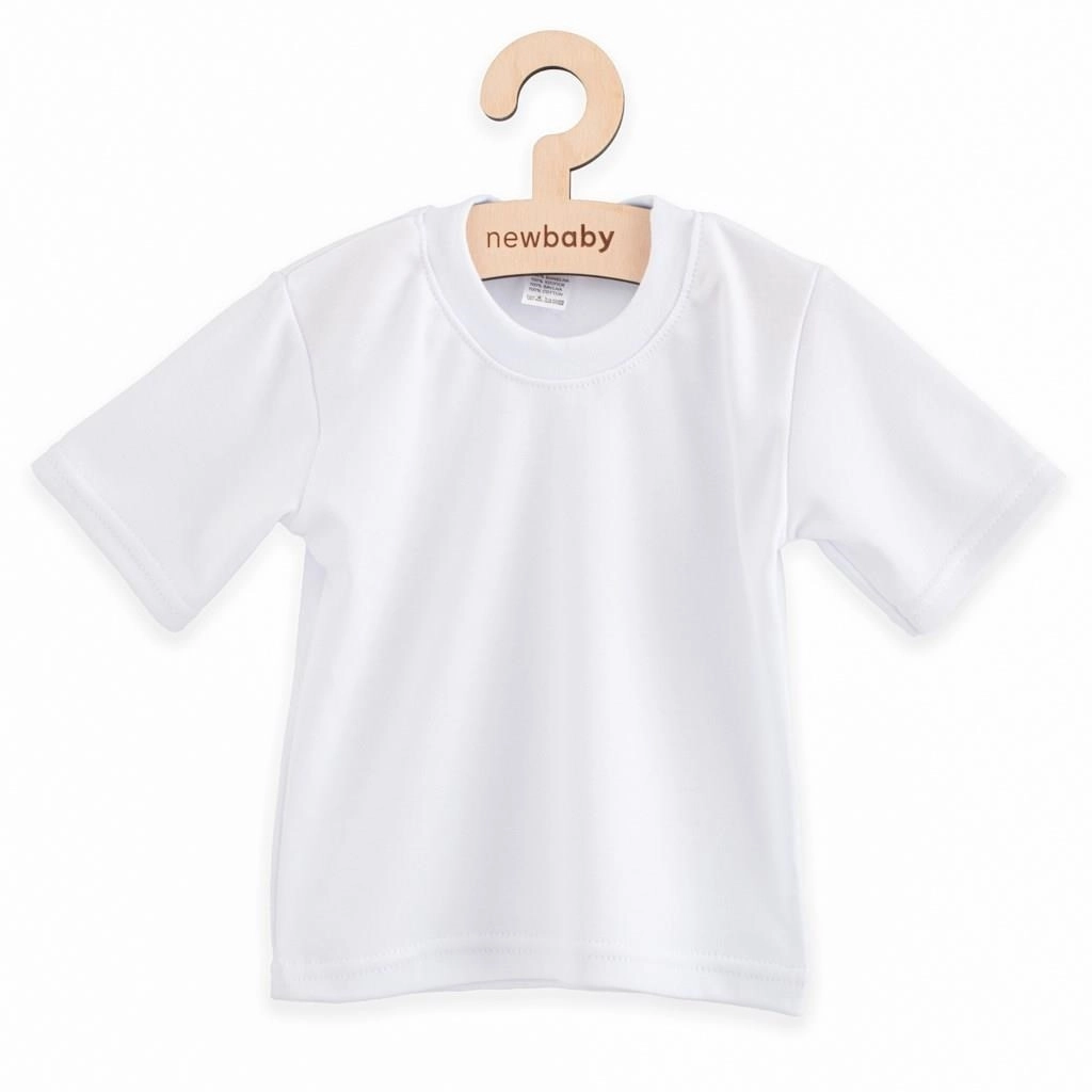 Leder du efter en praktisk og komfortabel t-shirt til hverdagsbrug? Børne-t-shirten NEW BABY i kvalitetsbomuld er luftig, blød og har en god pasform. Takket være den elastiske kant tages den let over hovedet, den strammer ikke og giver maksimal komfort under leg og hvile.