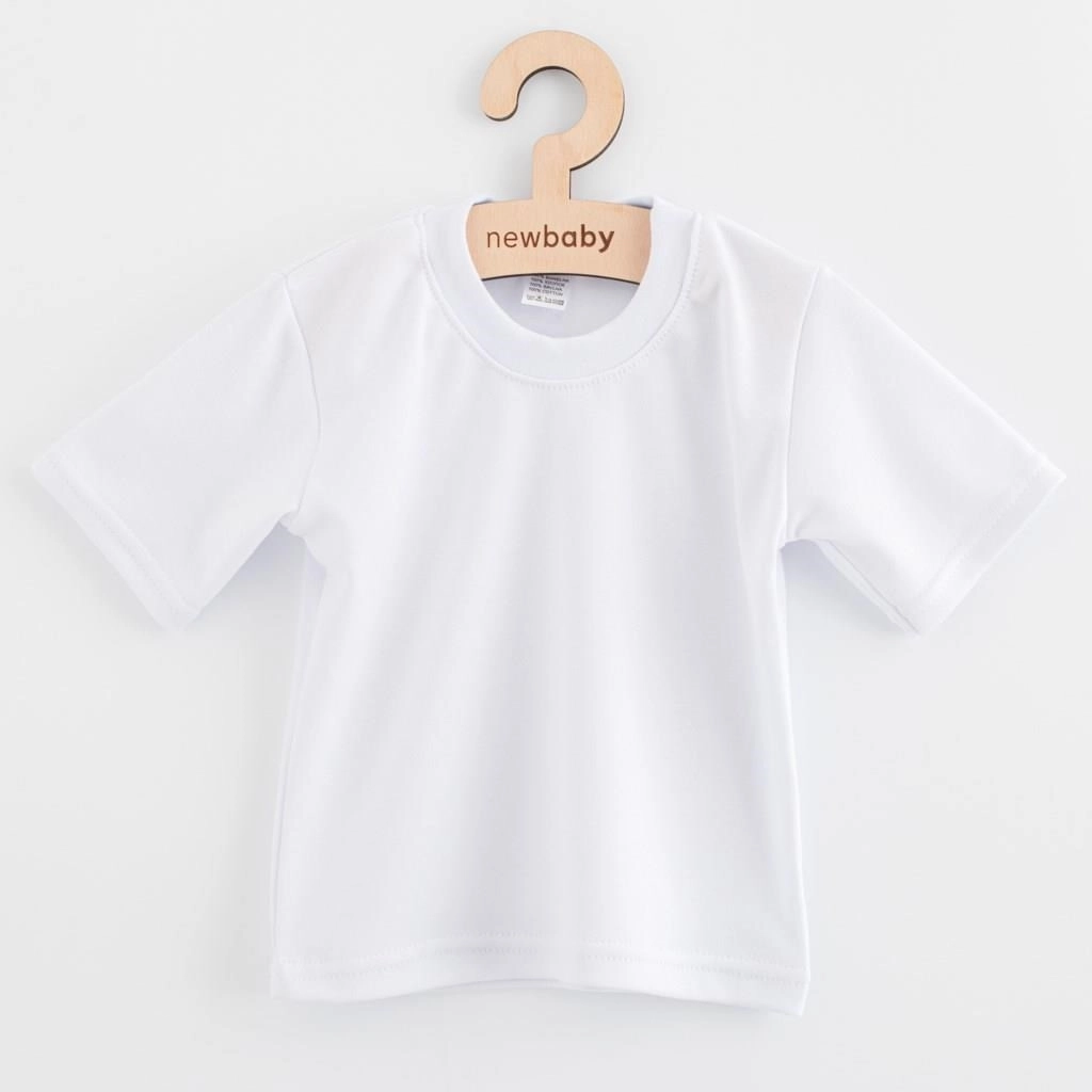 Komfortabel og kvalitets børne t‑shirt i 100% bomuld fra mærket New Babykorte ærmer, blød halskant uden lukning for nem påtagning over hovedet og er lavet af blødt og åndbart materiale. Certificeringen OEKO-TEX STANDARD 100 garanterer sikkerhed for børns sarte hud.