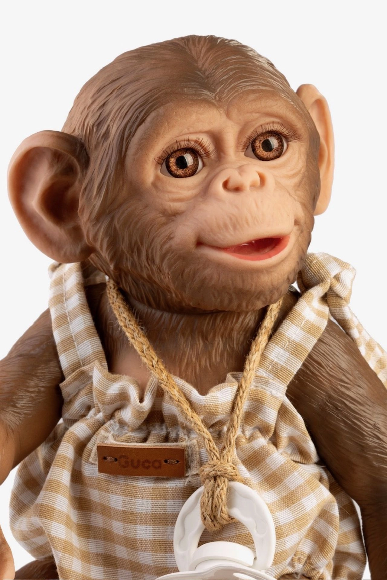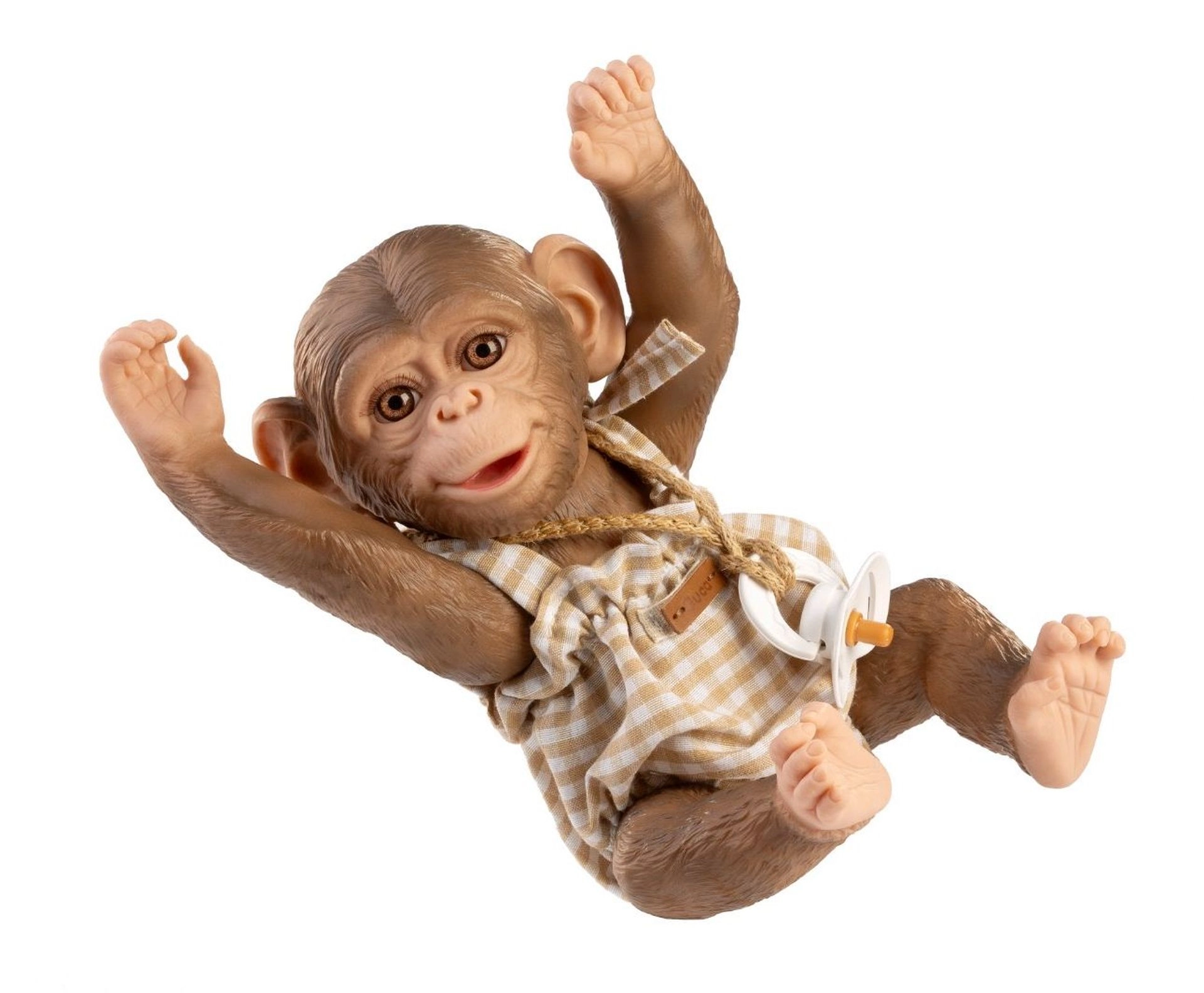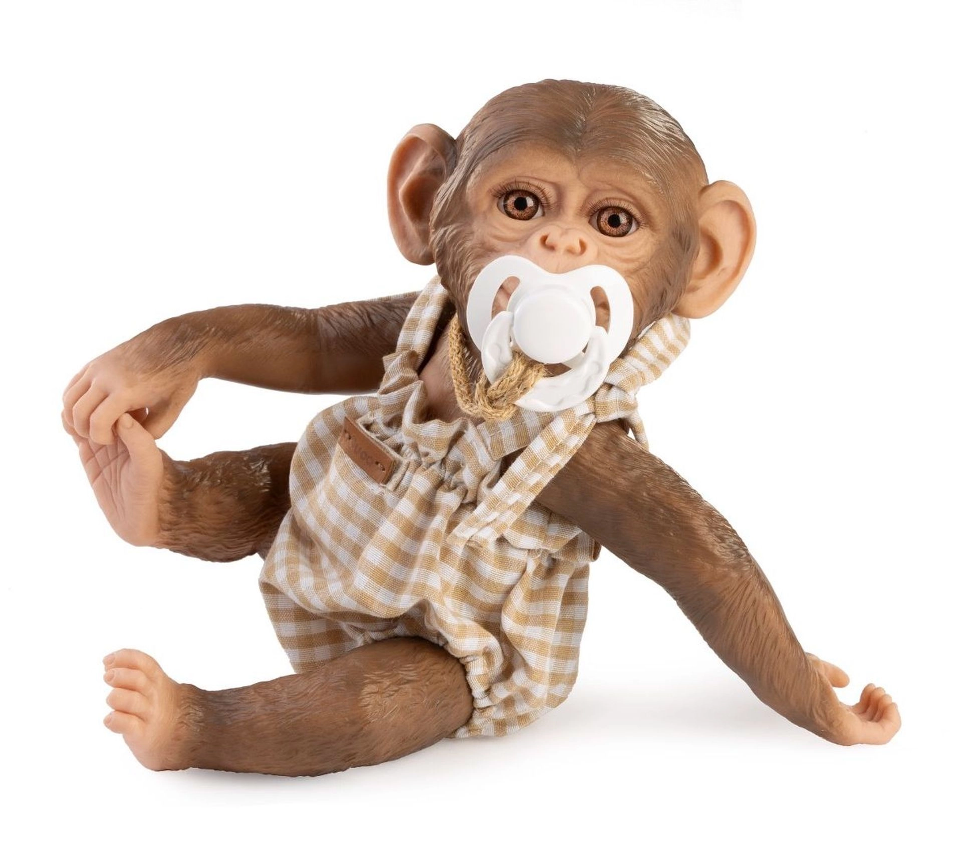 Hvid sut på snor understøtter fantasifuld leg og giver abe-babyen REBORN et mere autentisk udtryk.