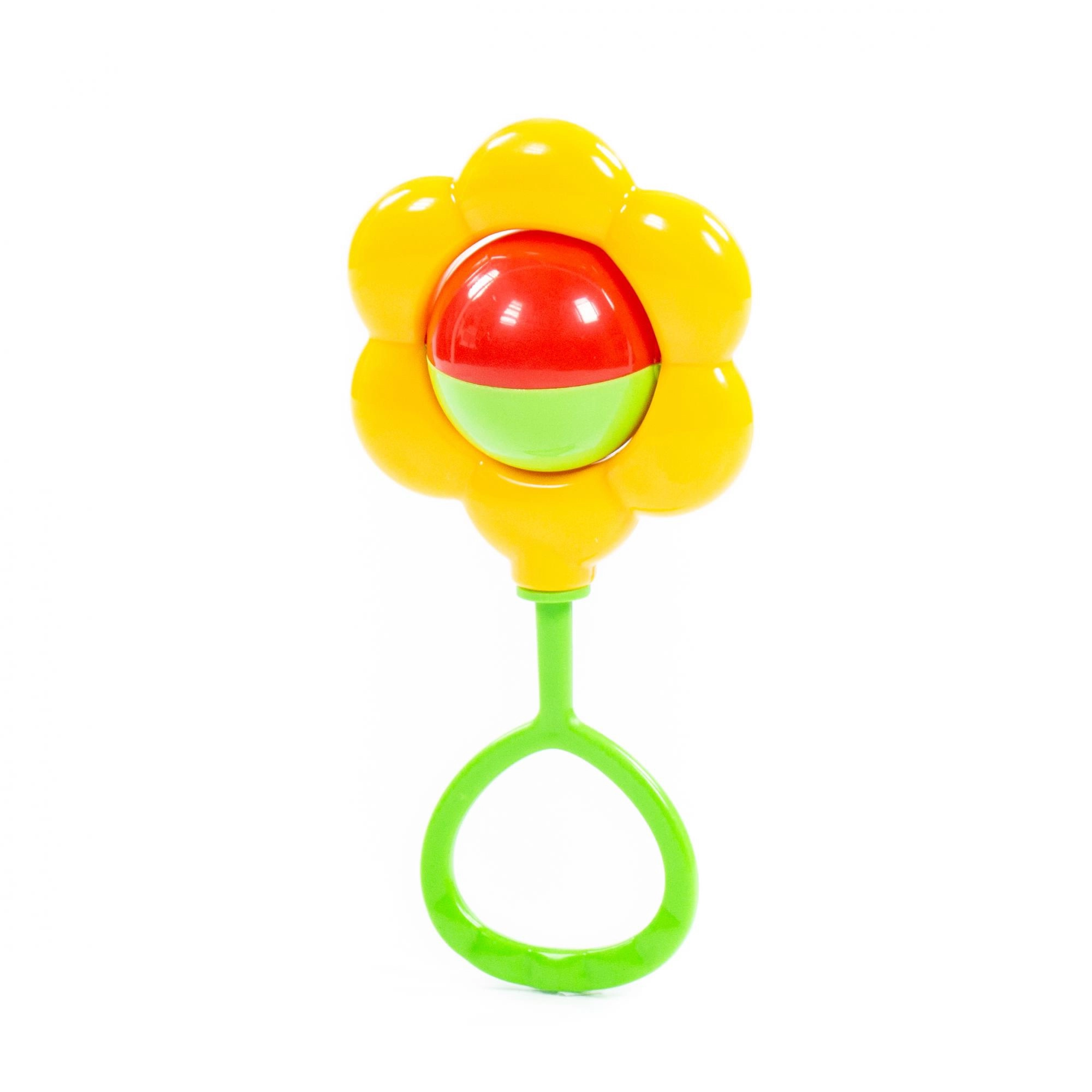 Den roterende kugle i midten af blomsten skaber en behagelig lyd og farverig bevægelse, som fanger og stimulerer barnets sanser.