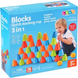 Færdigheds- og læringsspil 3-i-1 hurtige kopper med bolde, 38 dele