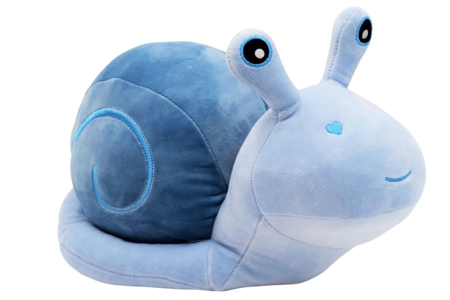 Den søde plys-snegl med broderede øjne og et smil glæder både børn og voksne. Fås i tre farvevarianter – blå, lyserød og gul. Det bløde fløjlsagtige stof og den bløde fyldning gør den til en ideel ven til leg og hygge.