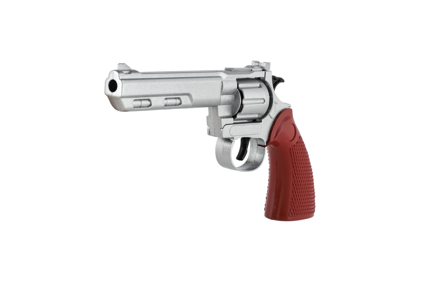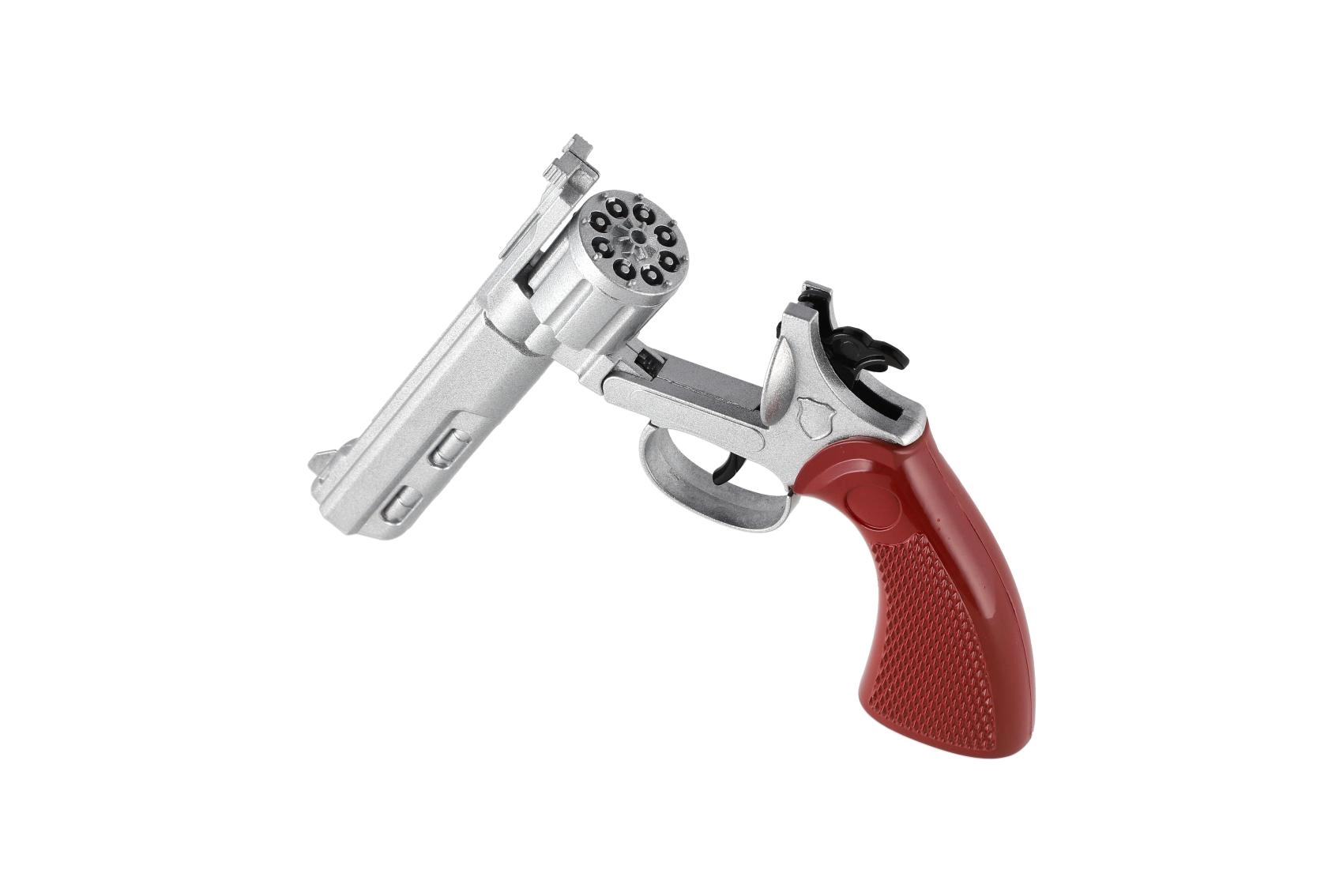 Revolverens krop er lavet af metal, hvilket giver et autentisk look og øget holdbarhed ved almindelig leg.