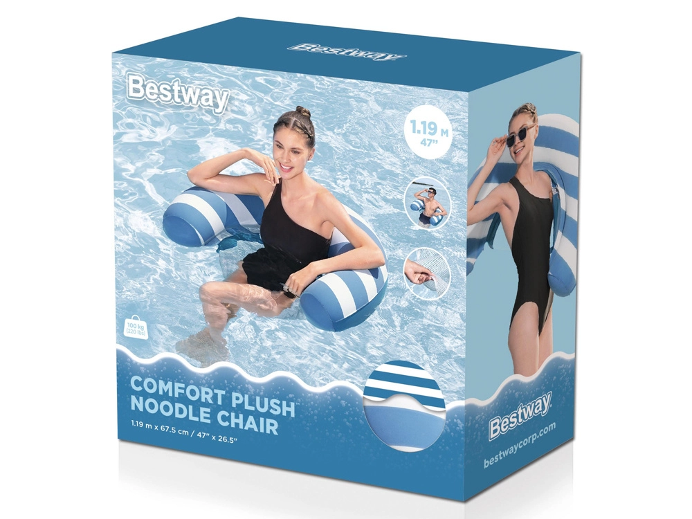 Nyd sommerens afslapning til fulde. Vandstolen BESTWAY Comfort Plush kombinerer en blød, fløjlsagtig overflade med et kølende mesh-sæde, som behageligt afkøler kroppen, mens du hviler på vandoverfladen. Takket være farveskift-effekten får flyderen en mere attraktiv og intens nuance, når den bliver våd.