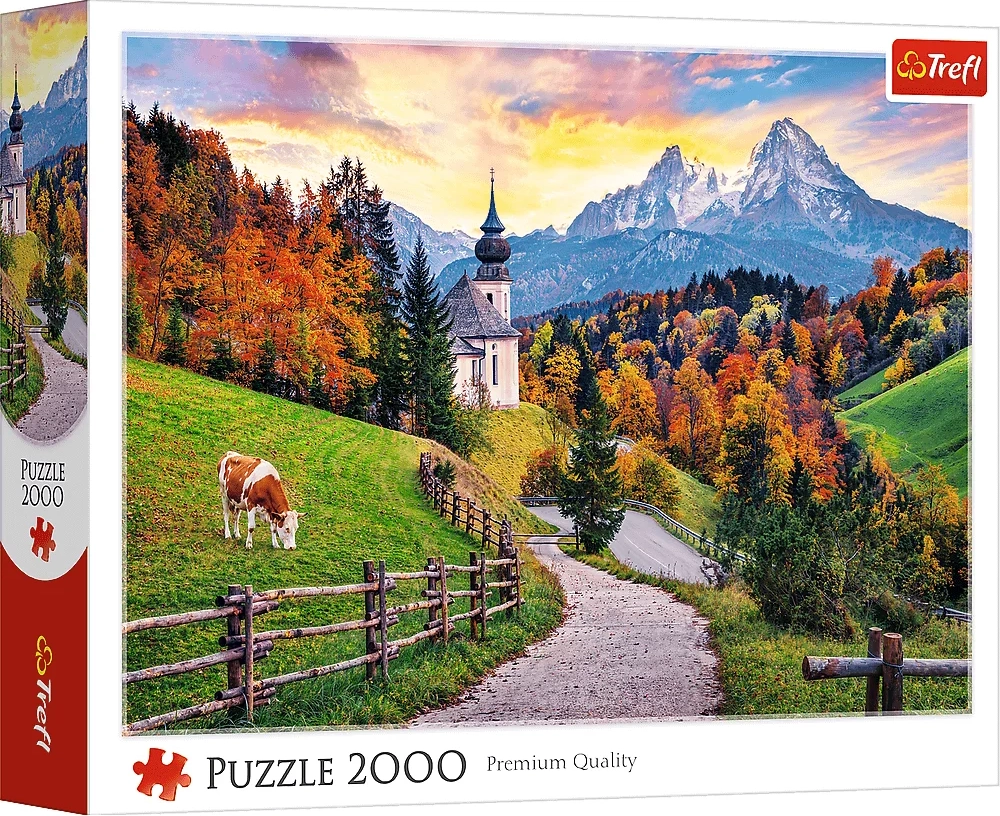 Oplev glæden ved at lægge et storformatspuslespil, der tager dig til Bayerns maleriske sceneri. Varme efterårstoner, træhegn og snedækkede bjergtoppe skaber et harmonisk billede med fremragende dybde og farvekontrast. Takket være den præcise udstansning passer brikkerne sikkert sammen, og lægningen er jævn og tilfredsstillende.