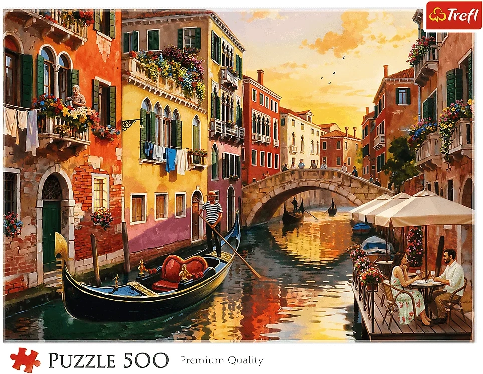 Nyd rolige stunder med TREFL‑puslespillet med et romantisk motiv af Venedig. Med 500 brikker er det ideelt for både begyndere og øvede, som søger kvalitetsforarbejdning og dybe farver for maksimal nydelse af hver brik.