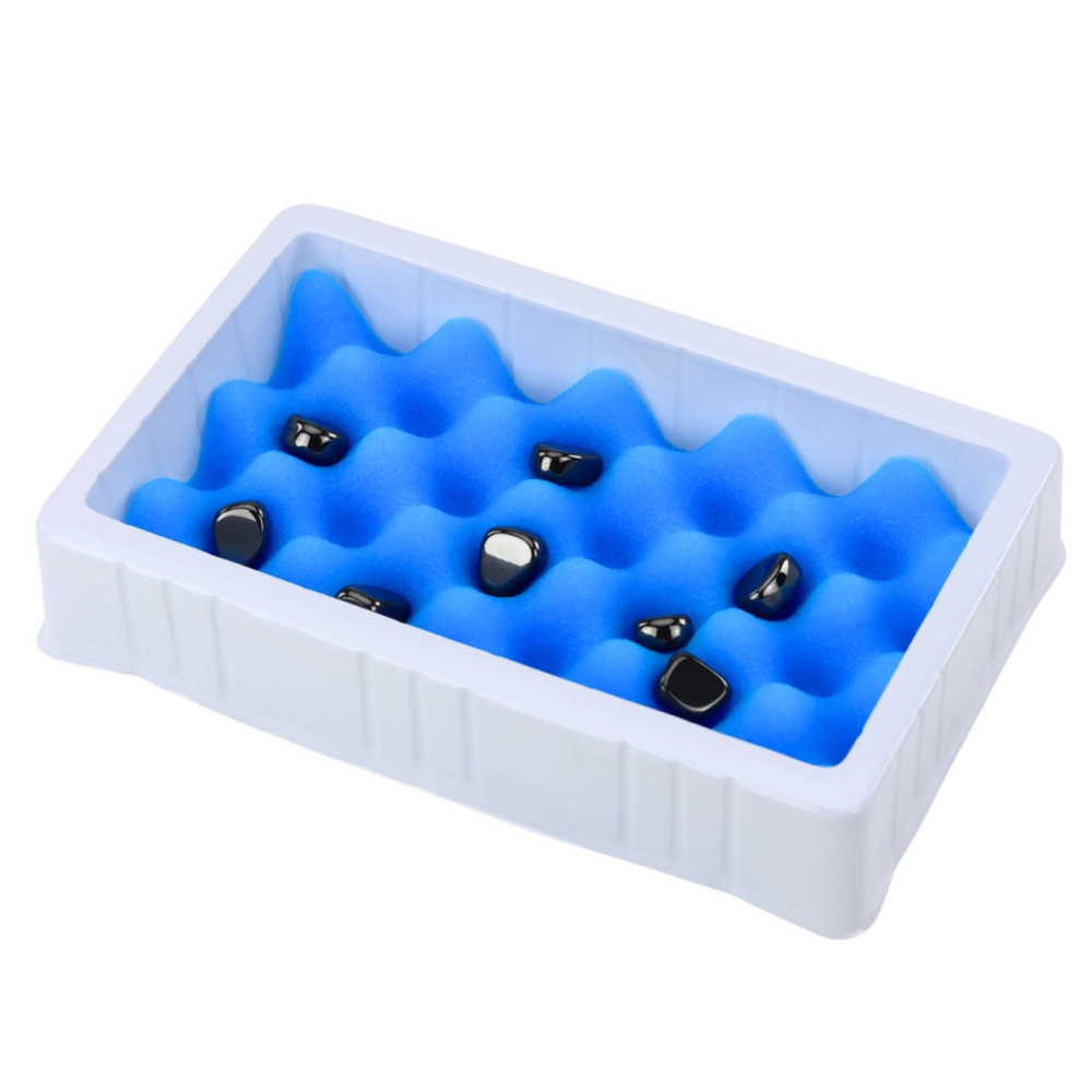 Et solidt plastbakke med formstøbt skumindsats holder stenene adskilt og klar til spil. Nem organisering og sikker opbevaring efter endt spil.