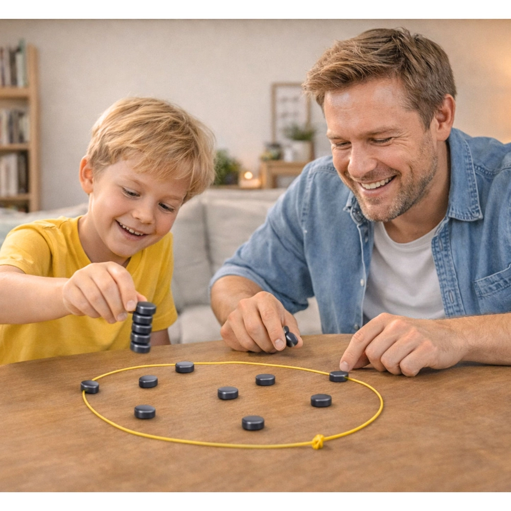 Dette magnetiske brætspil er ideelt til familieaftener og hurtige dueller. Hver spiller får det samme antal magnetiske sten og lægger dem på skift inden for det afmærkede felt. Hvis stenene forbindes i din tur, skal du tage alle de forbundne sten tilbage – enkle regler, men spændingen stiger for hvert træk.