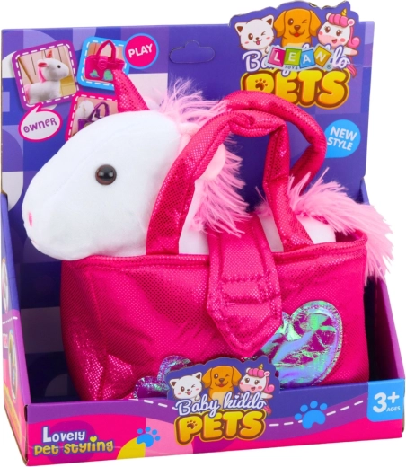 Den søde plysunicorn i en praktisk håndtaske vil glæde hvert barn med sin blødhed, silkebløde pels og kompakte størrelse. Takket være den lette taske med hanke og lukning med velcro kan børn tage deres yndlings-kæledyr med overalt – på gåtur, i bilen og på besøg.