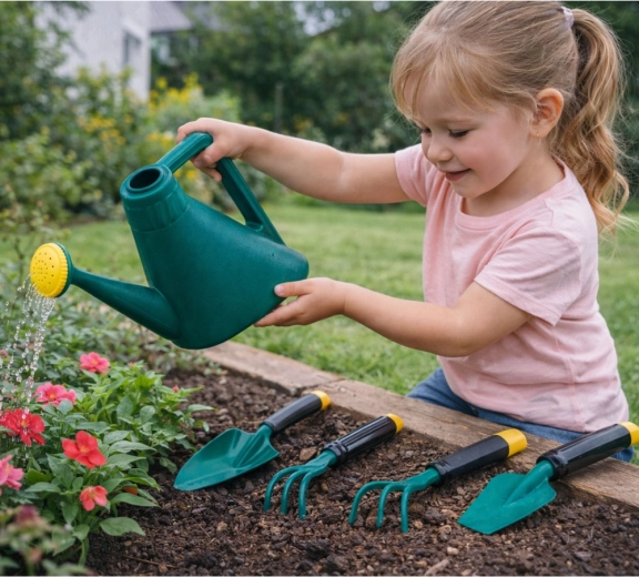 Slip barnets fantasi løs i haven med dette komplette sæt til små gartnere. Indeholder lette og sikre redskaber med ergonomiske håndtag, en praktisk vandkande og en transportabel værktømsboks til nem opbevaring. Understøtter kreativitet, finmotorik og læring om naturen gennem leg.
