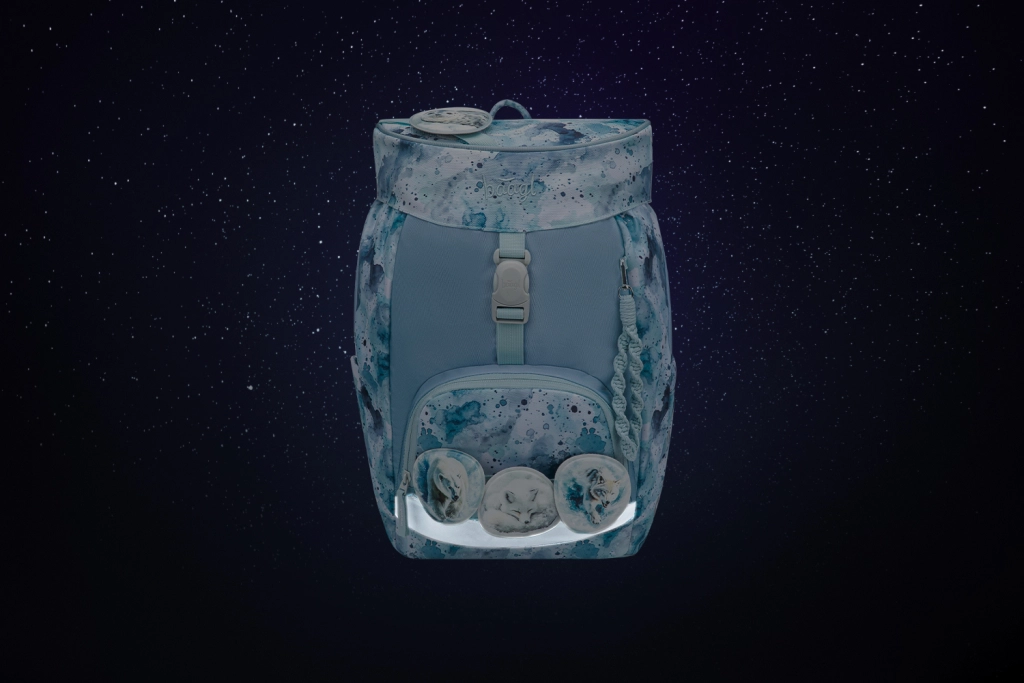 Det indvendige enkelt-rums layout med lomme og elastik til fastgørelse af mapper gør organiseringen af skolesager nem. Rygsækken er fremstillet af genanvendte, vandafvisende materialer og er udstyret med reflekselementer for bedre synlighed i skumring og regn. Den Magnetic Click-lukning er nem og sikker at betjene for enhver skolebegynder, mens aftagelige badges (patches) gør det muligt at ændre udseendet efter humør.