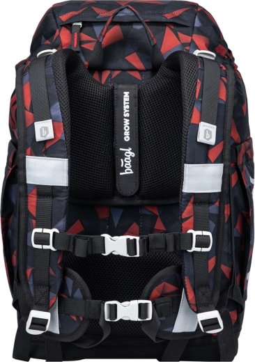 Anatomisk formet ryg med aluminiumsstiver, justerbare skulderremme, brystrem og aftageligt hoftebælte. Tre niveauer af rygindstilling sikrer komfort og korrekt kropsholdning fra 1. klasse.