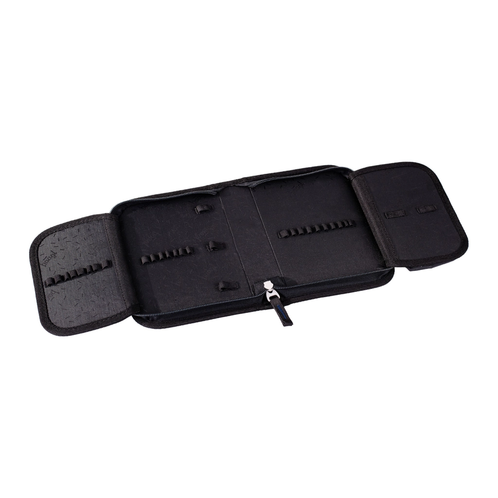 Udfoldeligt penalhus med to flapper, solid elastikholder til farver og YKK-lynlås. Pung med nakkestrop opbevarer sikkert kontanter og kort.