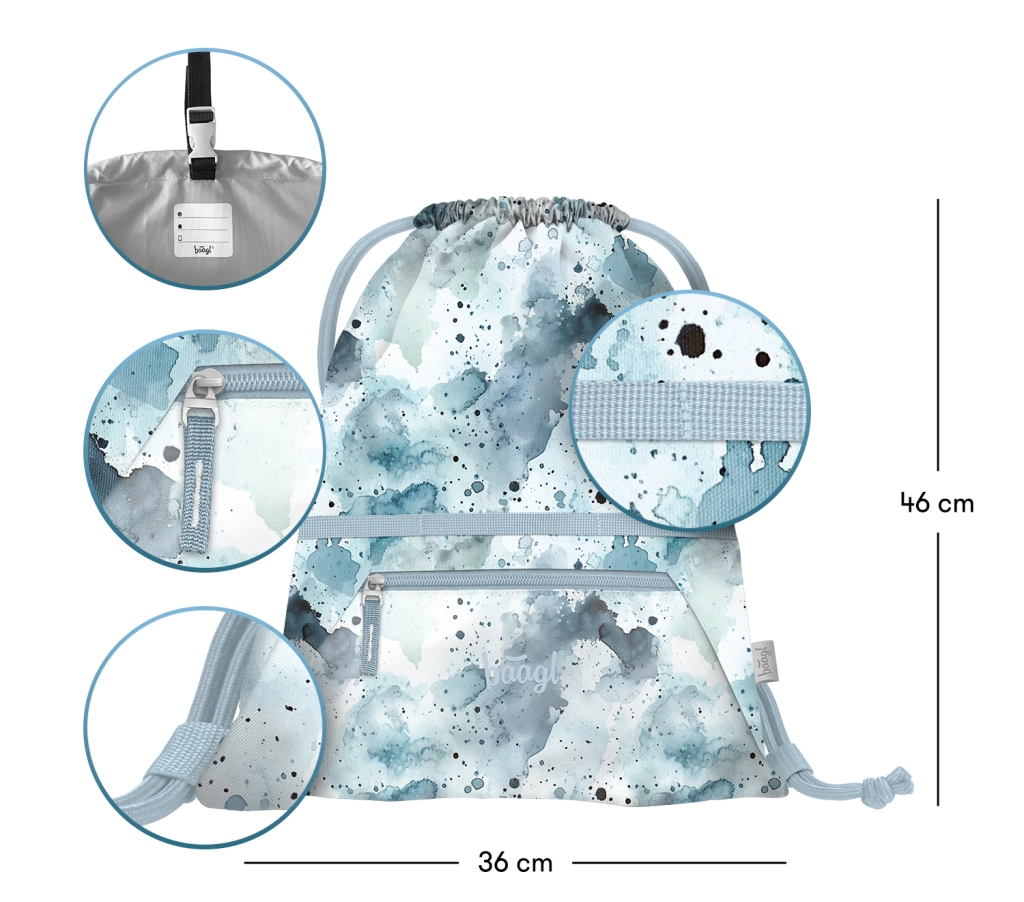Posen med lomme Baagl Polar GRS er et ideelt valg til skole, sport og fritidsaktiviteter. Den forreste lynlåslomme giver plads til småting, mens hovedrummet nemt rummer skiftesko, sportsudstyr eller daglige nødvendigheder.