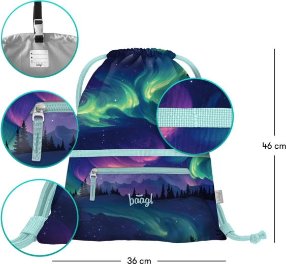 Posen med lomme Baagl Aurora GRS er en stilfuld og funktionel løsning til daglig opbevaring af indesko, sportstøj og småting til skole eller rejse. Den forreste lynlåslomme holder nøgler, penge eller telefon sikkert ved hånden, mens det robuste, aftørringsvenlige materiale sikrer lang holdbarhed og nem vedligeholdelse.