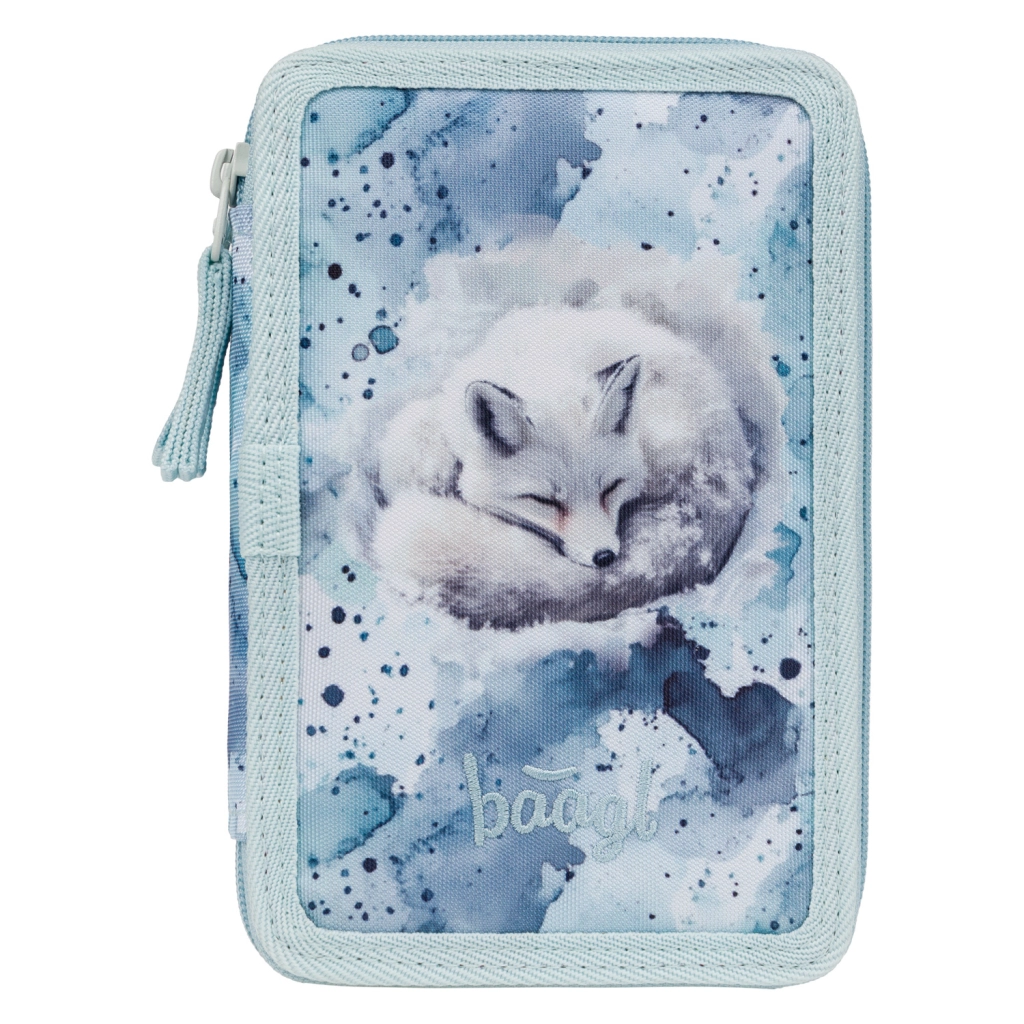 Stilfuldt og ekstra rummeligt trelags penalhus fra BAAGL med motiv af en sovende ræv i akvarelstil, som tilbyder maksimal organisering af skoleudstyr, pålidelige YKK-lynlåse og elastikker også til tykke farveblyanter og tuscher. Takket være den forstærkede ryg lukkes det let, og med GRS-certificering er det mere skånsomt for miljøet. Penalhuset leveres uden indhold.