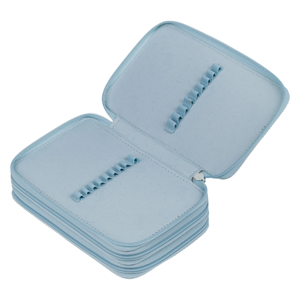 Det gennemtænkte indre med fleksible elastikker rummer sikkert både tynde og tykke skriveredskaber – fra farveblyanter og tuscher til kuglepenne, linealer og små hjælpemidler. Den forstærkede ryg gør det nemt at lukke, lynlåsen rundt om kanten sikrer sikker opbevaring af indholdet, og de afrundede hjørner beskytter både penalhuset og dets indhold.