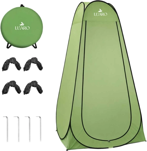 Selvopslående privat telt LUARO til brusebad, omklædning og toilet – grøn