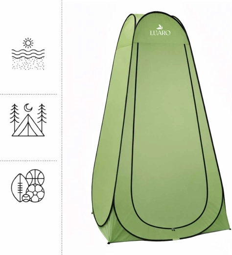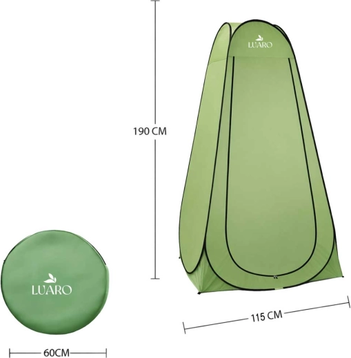Det praktiske og mobile pop-up telt LUARO giver en øjeblikkelig privat kabine til omklædning, brus eller toilet på strand, campingplads og festival. Takket være den selvopslående konstruktion sætter du det op på få sekunder, det er let, vindbestandigt og nemt at transportere i den medfølgende taske.