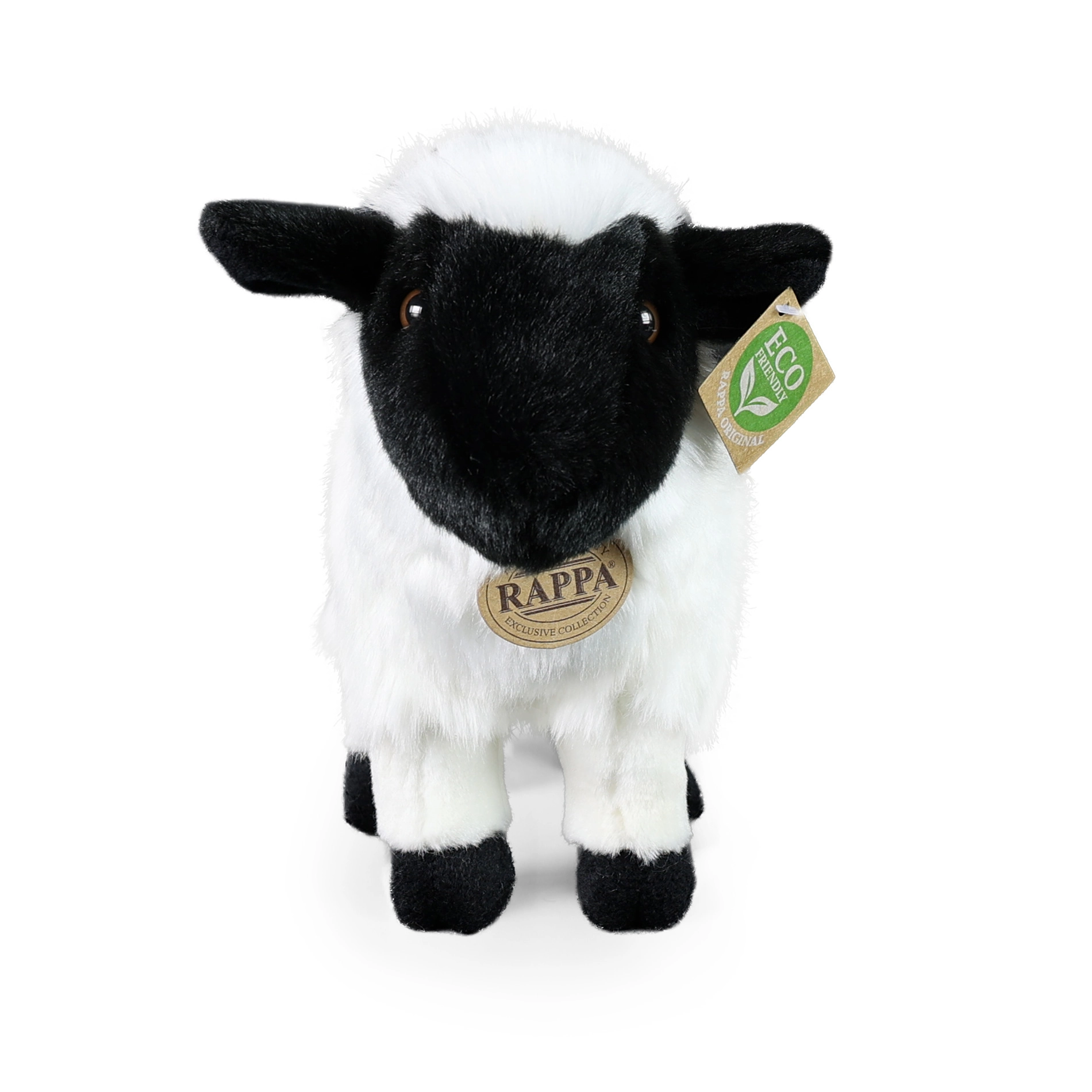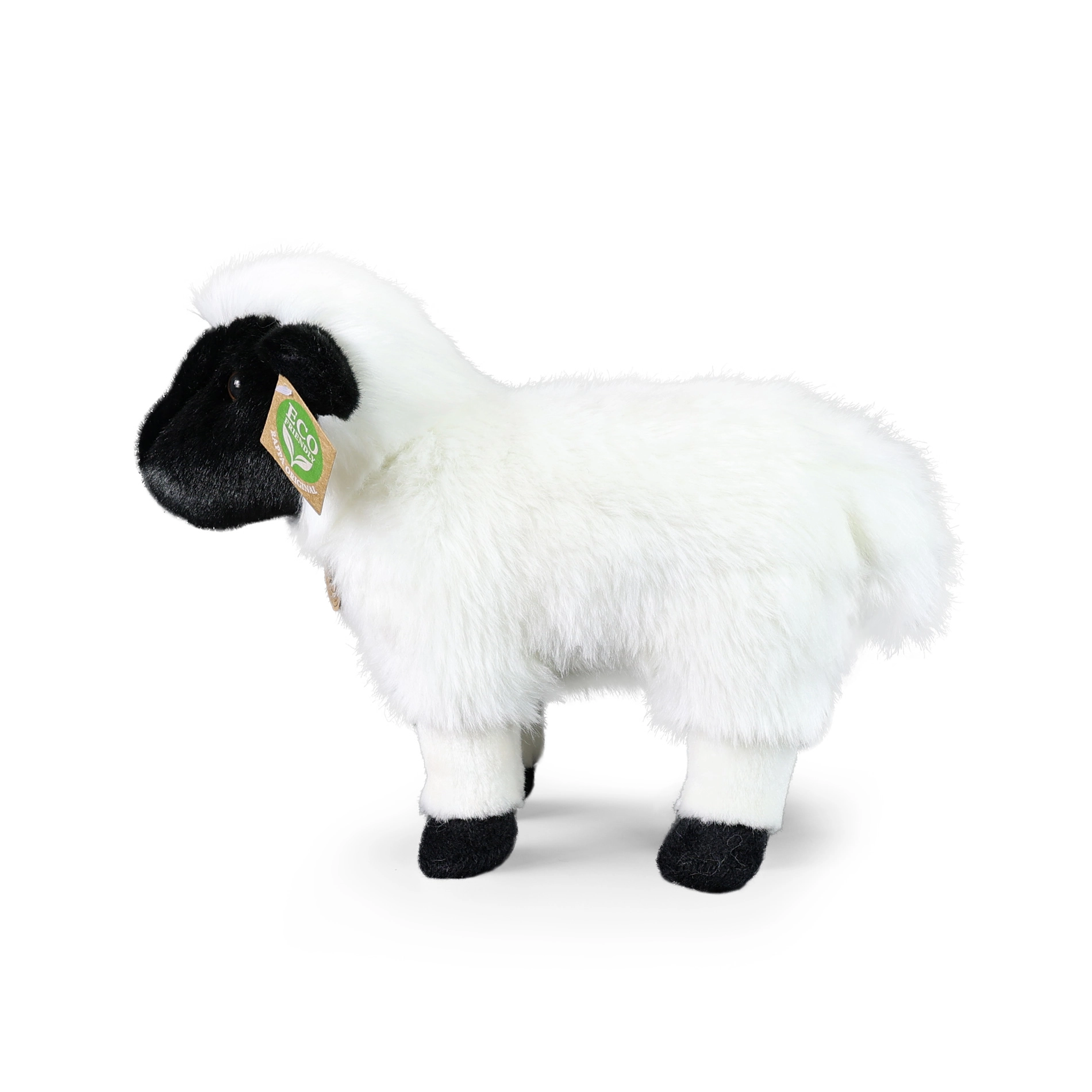 Sødt plysset får i størrelsen 27 cm fra RAPPA’s eksklusive kollektion, fremstillet af kvalitetsmaterialer, der er dejligt bløde at røre ved, og som takket være håndværket ser helt levende ud. Fyldet af genanvendte materialer (PET-flasker) er sikkert selv for nyfødte, så det egner sig til kram og leg og støtter et bæredygtigt valg af legetøj.