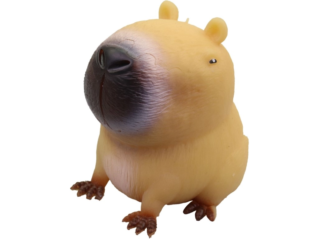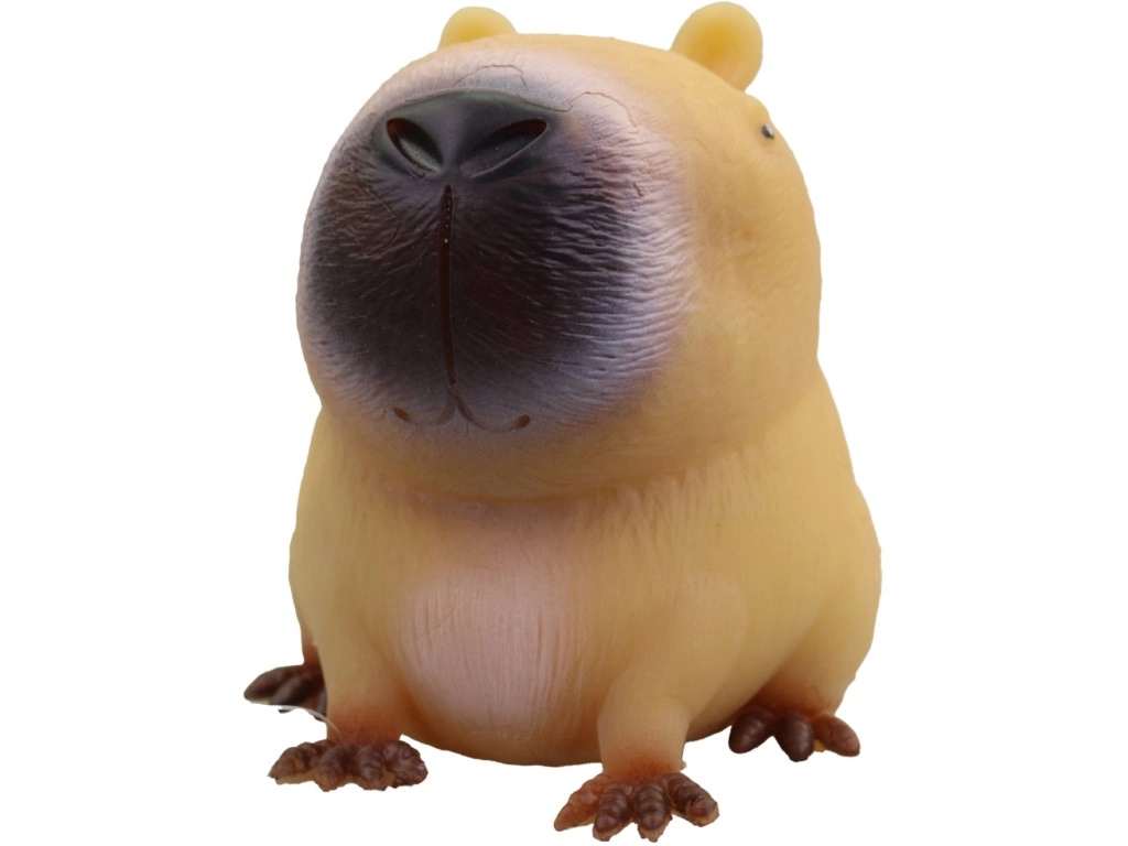 Denne kapybara er en sød dekorativ figur og et legetøj til børns lege. Takket være gummimaterialet er den behagelig at røre ved, holdbar og nem at rengøre. Realistiske detaljer som snudens, ørernes og poternes form understøtter fantasien og læring om dyr.