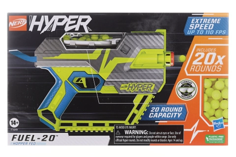 Oplev adrenalinfyldt action med NERF Hyper Fuel 20 fra den moderne Hyper-serie. Den tilbyder høj skudhastighed, kompakt design og er beregnet til spillere fra 14 år. I pakken finder du 20 kugler til øjeblikkelig sjov.