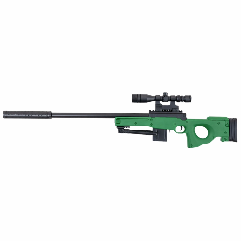 Børne gel-snyperrifle med kikkertsigte, lyddæmper og bipod