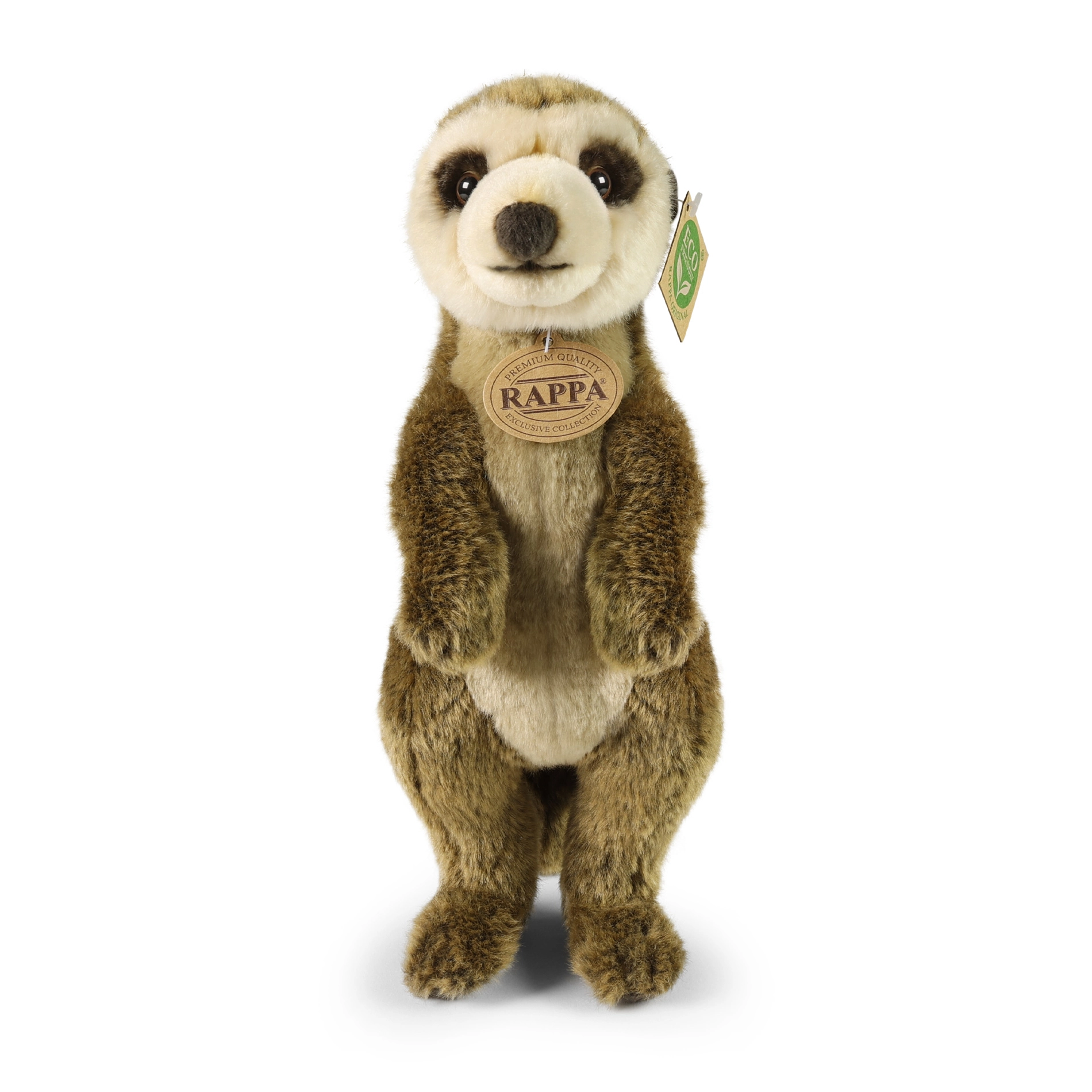 Denne plyssurikat står oprejst som en ægte, imponerer med blød pels og omhyggeligt broderede detaljer. Det tjekkiske mærke RAPPA lægger vægt på bæredygtighed – fyldet er lavet af genanvendte PET-flasker og forbliver samtidig luftigt, sikkert og behageligt at røre ved.