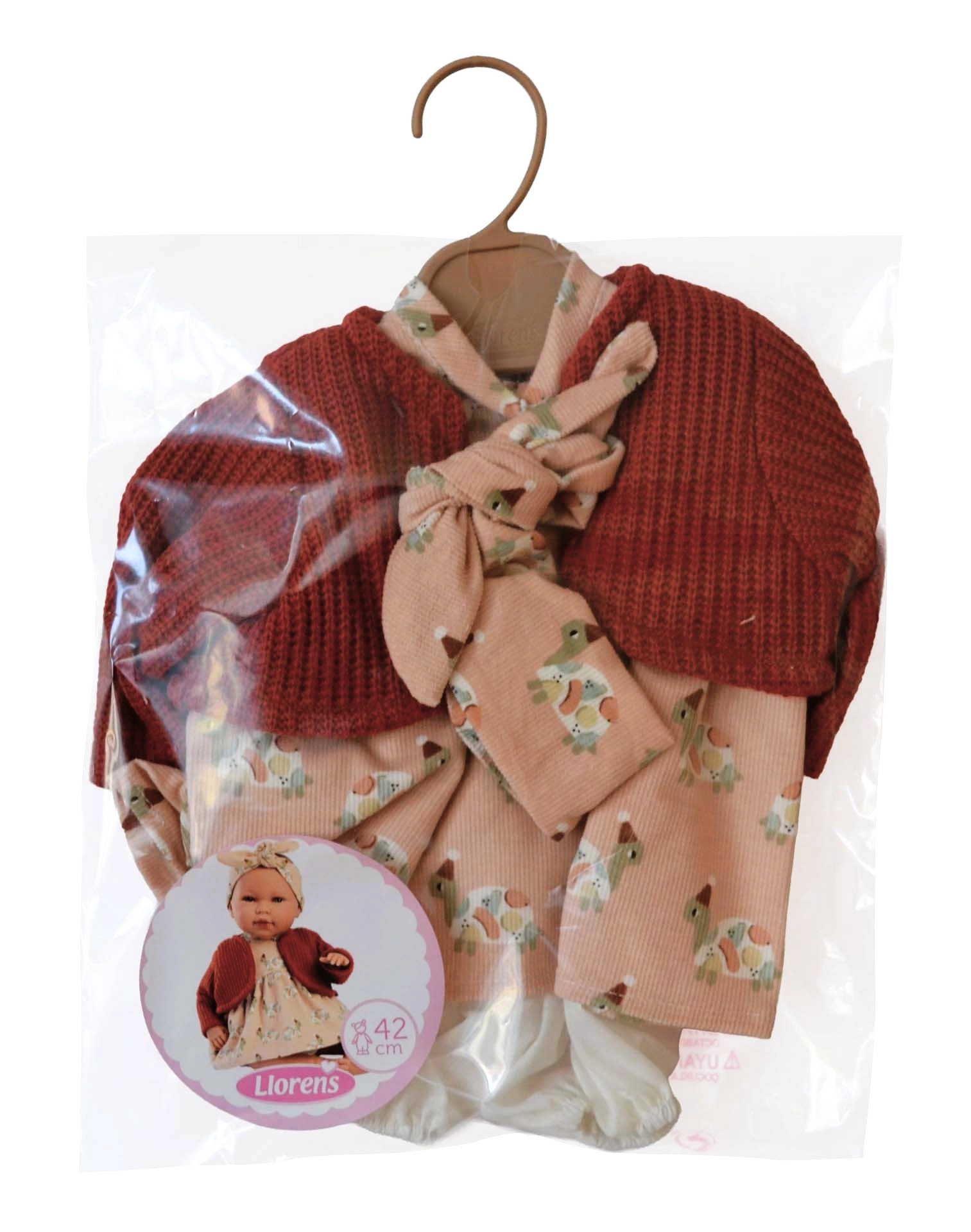 Forkæl din dukke med et nyt outfit med det 4-delte sæt fra Llorens, designet specielt til New Born-dukker i størrelsen 40–42 cm. Hvert stykke er omhyggeligt og håndlavet i Spanien, hvilket sikrer præcis udførelse, nem påklædning og lang holdbarhed.