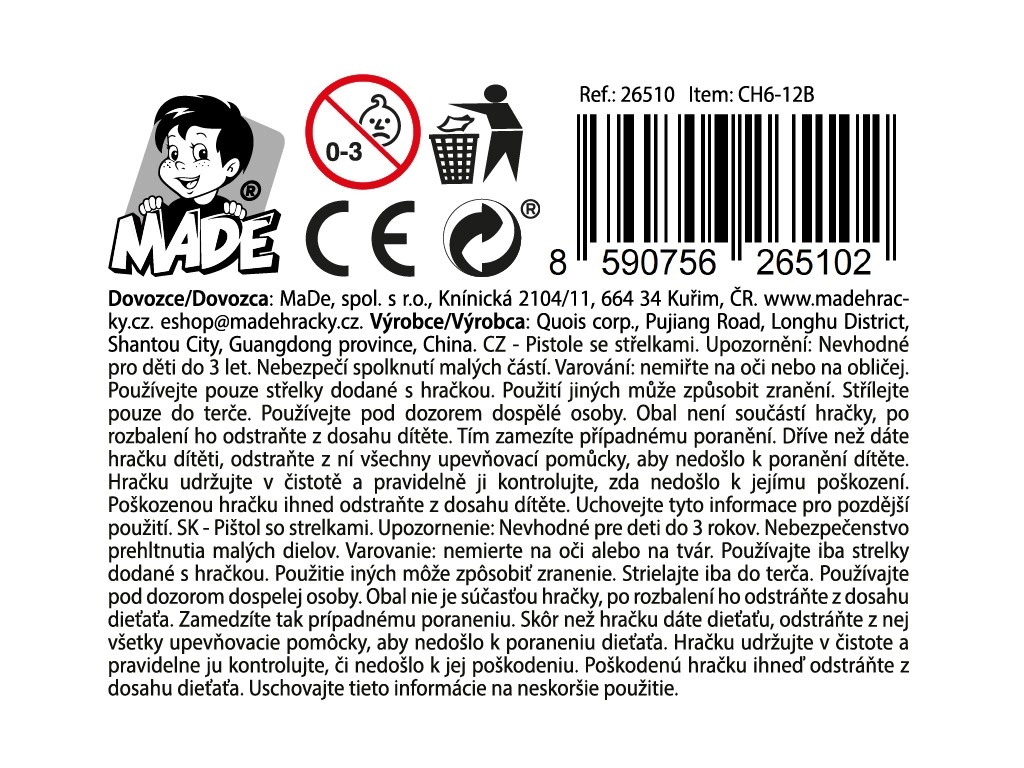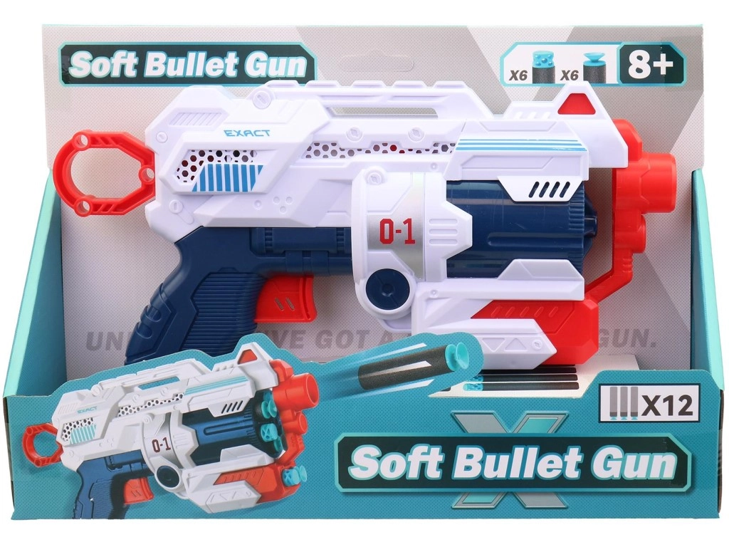 En sjov børnepistol med skud på 28,5 cm giver sikker actionleg for drenge fra 3 år. Takket være let plastkonstruktion og nem betjening er den ideel til legesysseler fyldt med eventyr. Leveres i en åben boks for hurtig udpakning og øjeblikkelig leg.