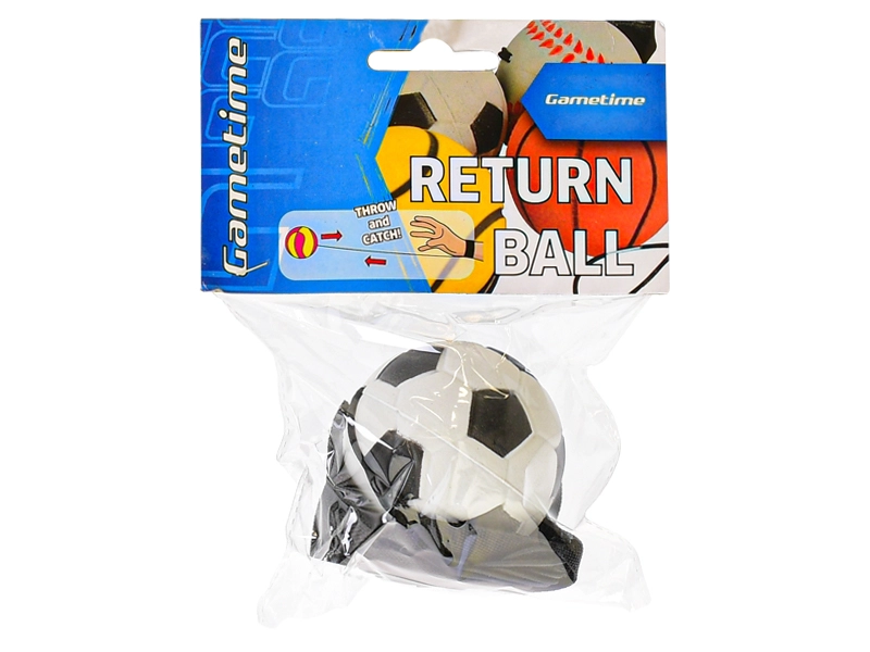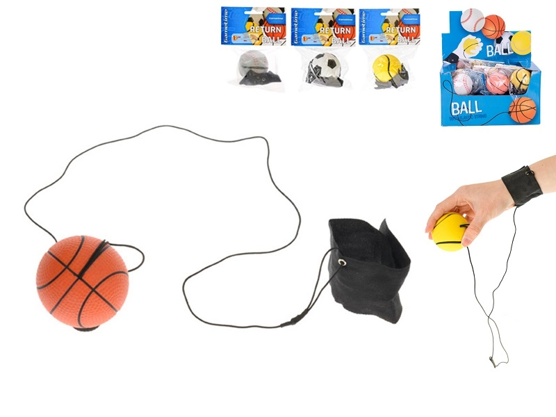 Sjovt legetøj for både børn og voksne: GAMETIME tilbagevendende bold med en diameter på 60 mm er fastgjort til en elastisk snor med håndledsrem, så den altid vender tilbage efter et kast. Perfekt til træning af koordination, reflekser og sikker sololeg uden at miste bolden. Fås i tennis, fodbold, basketball og baseball. Velegnet fra 6 år.
