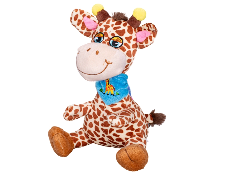 Denne plysbamse-giraf vil begejstre børn fra første berøring. Det bløde, kvalitetsmateriale er behageligt mod huden og sikkert for babyer, mens det siddende design sikrer stabilitet under leg og som sød dekoration på børneværelset. Med en kompakt højde på 20 cm passer den nemt i barnevognen, tasken eller barnesengen.