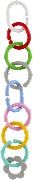 Denne sæt med farvede ringe og former er designet til de allermindste. Takket være de forskellige farver, former og teksturer udvikler børn naturligt sansemotorik og hånd–øje-koordination. De enkelte dele er nemme at koble sammen og holder fast, så børn kan lave deres egne kæder eller fastgøre legetøj til barnevogn eller autostol.