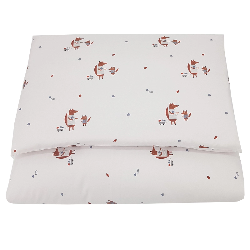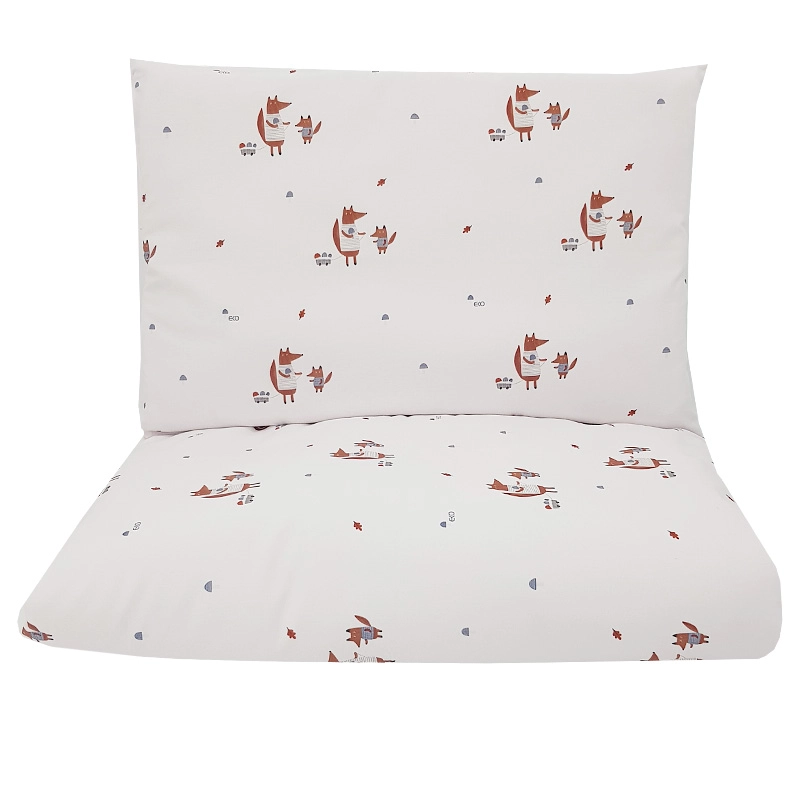 Sødt børnesengetøj med rævemotiv i 100% bomuld sikrer blød, åndbar og behagelig søvn. Sættet indeholder et dynebetræk 90 × 120 cm og et pudebetræk 40 × 60 cm, ideelt til tremmeseng.