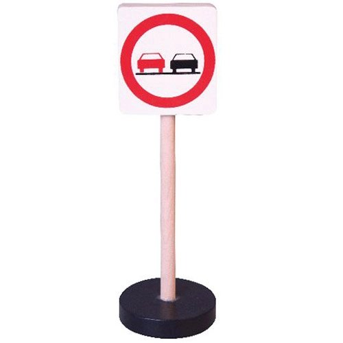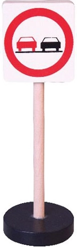 Træfærdselsskilt med symbolet for overhalingsforbud er et fremragende pædagogisk redskab for børn fra 3 år. Det støtter læring af færdselsregler, udvikling af finmotorik og kreativ leg med biler. Fremstillet af kvalitetstræ, er det meget let og behageligt at røre ved for sikker daglig leg.