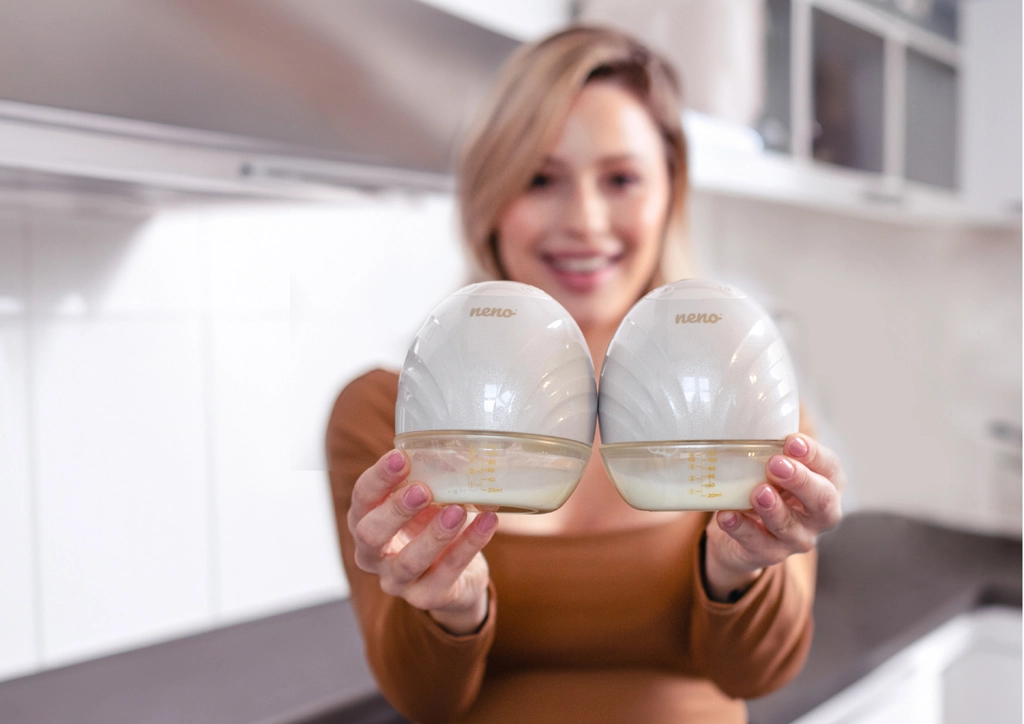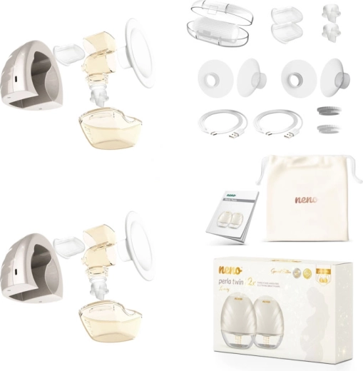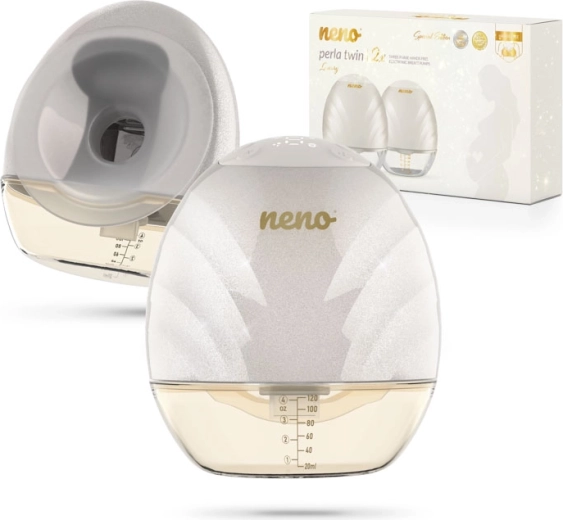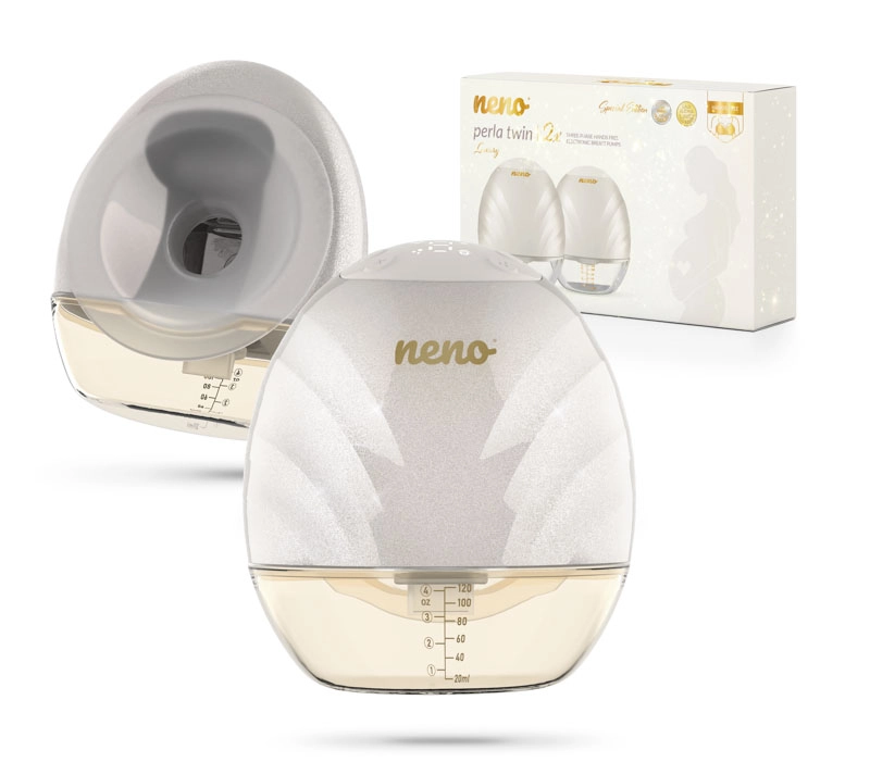 Neno Perla Twin er en moderne, dobbelt, trådløs og handsfree brystpumpe til modermælk, som lader dig pumpe behageligt fra begge bryster samtidig. Takket være det lette og kompakte design passer den direkte i amme-bh’ens skål og giver dig frie hænder til alt det vigtige. Den tilbyder 3 pumpefaser med 9 intensitetsniveauer, en anatomisk brystskål i 105° vinkel for naturlig mælkestrøm og rigt tilbehør, inklusive 19 og 22 mm indsatser for perfekt pasform.
