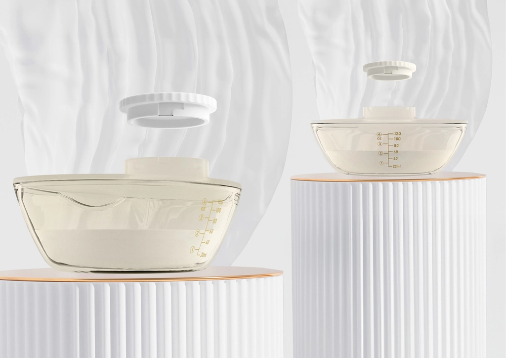 Brystskålen med 105° vinkel omslutter naturligt brystet for bedre mælkestrøm. En tydelig skala på beholderen gør det nemt at følge volumen.