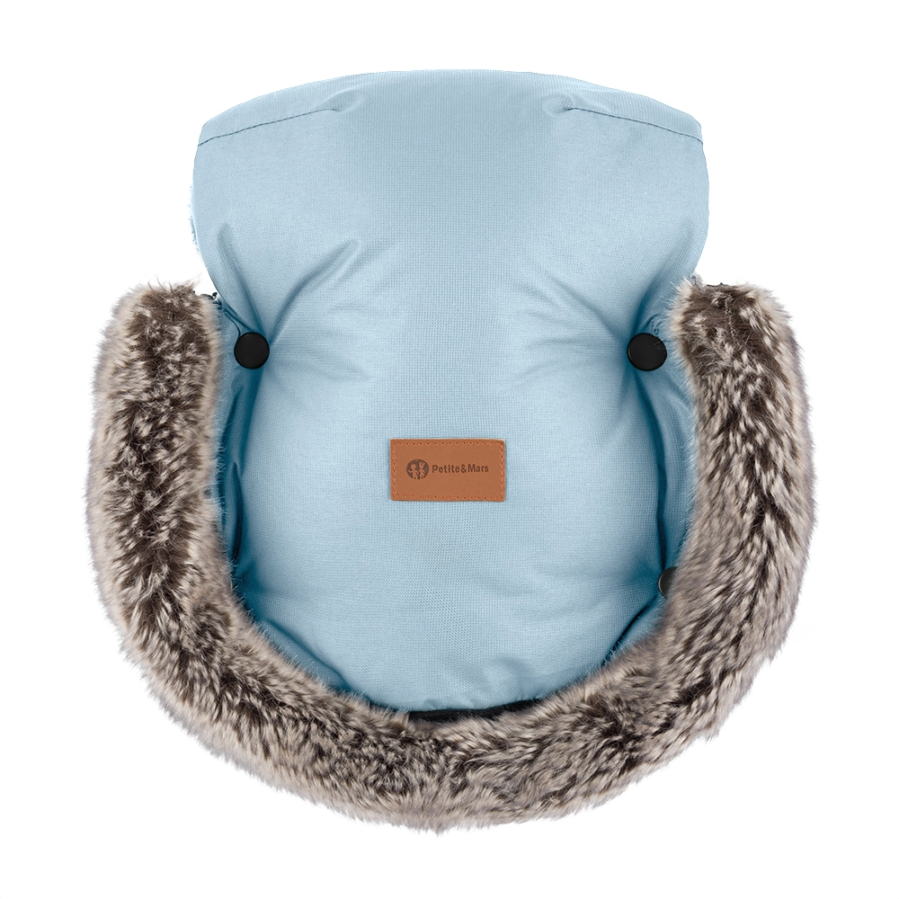 Vintersættet PETITE&MARS kombinerer den alsidige kørepose Arctic 4-i-1 og Furry-handsker i den matchende nuance Sky Whisper. Køreposen er ekstra lang (op til 110 cm), blødt polstret med varm fleeceforing, har vandafvisende og vindtæt overflade med BIONIC-FINISH ECO og en praktisk frontlynlås for nem adgang til barnet. Snore former en varm hætte, den aftagelige pelskant beskytter mod vind, og skridsikker bagside (ABS) holder køreposen på plads.