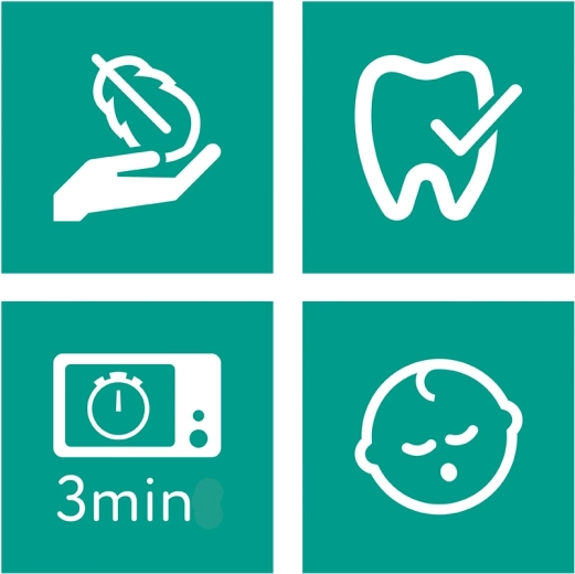 Medfølger gør et praktisk etui, der fungerer til hygiejnisk opbevaring og hurtig sterilisation i mikrobølgeovn. Så holder du sutterne rene og klar til brug overalt – hjemme og på farten. Forældre sætter også pris på den høje accept (98 %), som hjælper med hurtigt at berolige babyen.