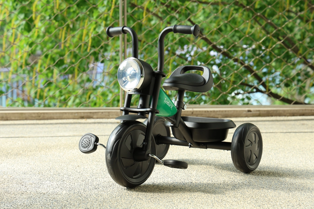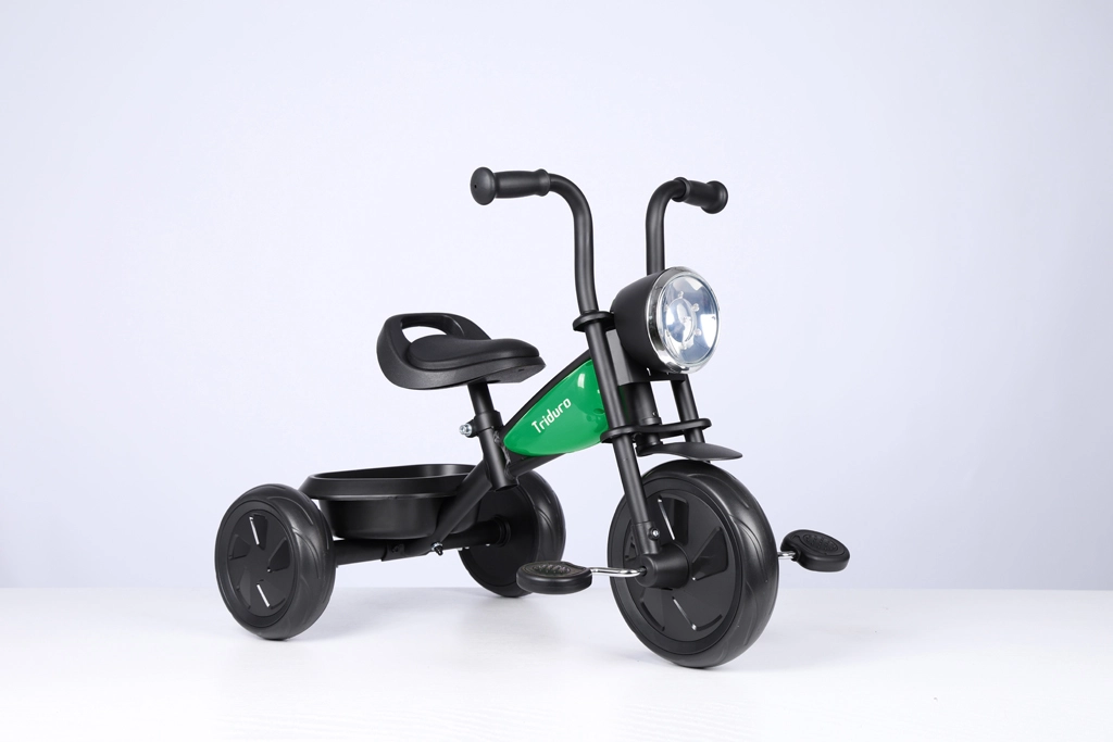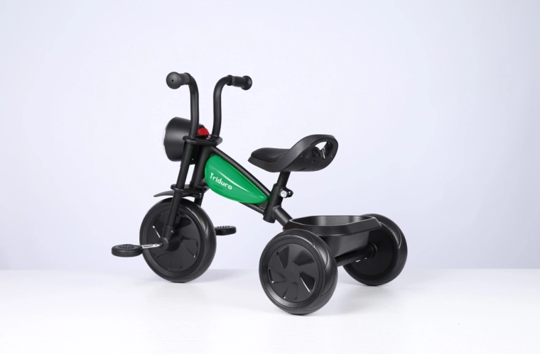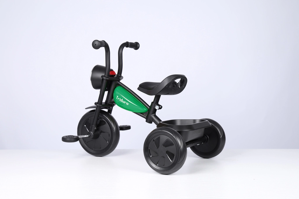 Den stilfulde børnetrehjuler Qplay Triduro med motorcykelinspireret design kombinerer sikkerhed, komfort og sjov for børn fra 2 til 6 år. Den byder på en robust stålramme, brede EVA-hjul for en jævn kørsel, justerbart polstret sæde i PU-læder og musiklys for endnu mere køreglæde. En praktisk bagkurv og bærehåndtag gør hverdagsbrug nemt.