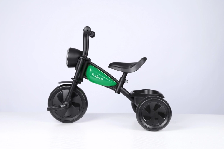 Trehjuleren Qplay Triduro er ideel til små eventyrere, der elsker stil og stabilitet på tre hjul. Motorcykel-look med detaljeret “tank”, komfortabelt sæde og holdbar konstruktion gør den til en perfekt makker på gåture og legepladsen. De brede EVA-hjul giver en jævn og stille kørsel på faste underlag.