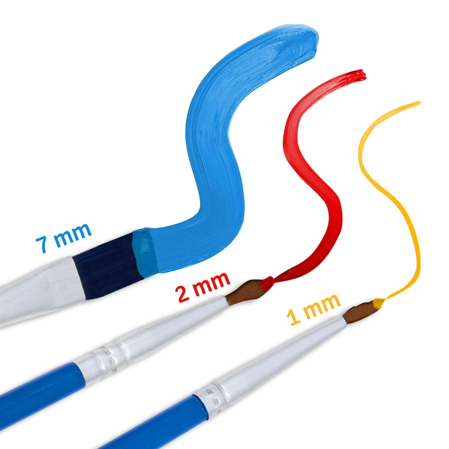 Tre pensler (1 mm, 2 mm og 7 mm) dækker både store flader og de mindste detaljer. Tykke, dækkende farver sikrer fuld opacitet uden gennemskinnende linjer.
