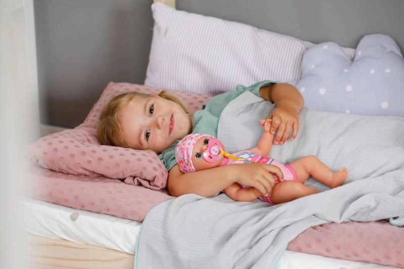 Introducér børn til babypleje på en legende og sikker måde. BABY born Lena har et blødt, børnevenligt design og enkle funktioner, der støtter udviklingen af finmotorik og fantasi. Når bleen kommer i kontakt med vand, dukker et gult hjerte op, hvilket giver legen et realistisk præg.