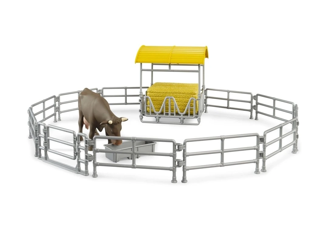 Bruder høloft med indhegninger og ko – bondegårdslegesæt