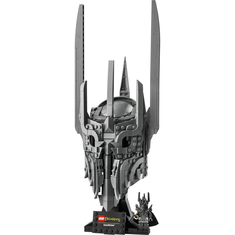 Trofast gengivne pigge, skarpe kanter og lagdelt panser skaber en imponerende silhuet af Saurons hjelm – perfekt som iøjnefaldende dekoration på hylde eller bord.